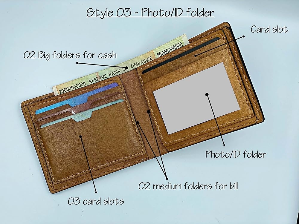 • هيكل بسيط: تحتوي المحفظة الجلدية الرجالية المصنوعة يدويًا على 06 فتحة للبطاقات، و02 حافظة كبيرة للنقود، و02 طيات متوسطة للفواتير/الملاحظات. إنها محفظة بسيطة، نحيفة ورفيعة، تناسب الجيب الأمامي ولكنها توفر مساحة كافية لاستخدامك اليومي.