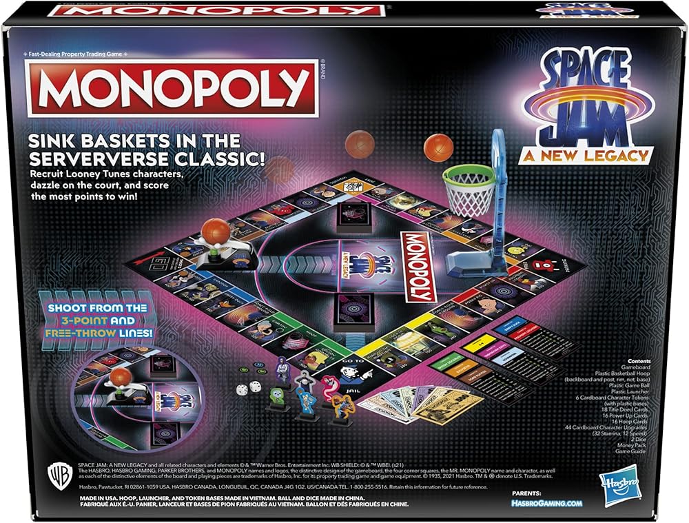 BASKETBALL FUN: The Monopoly: Space Jam: A New Legacy Edition family board game is a fun game for 2-6 players. It's a fun indoor activity for kids ages 8 and up and a fun game for a family game night