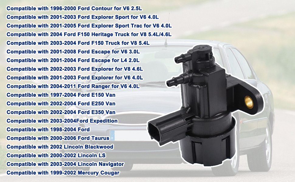 متوافق مع: 96-2000 فورد كونتور؛ 97-04 فورد E150 فان؛ 02-04 فورد E250 فان؛ 02-04 فورد E350 فان؛ 01-08 فورد إسكيب؛ 03-04 رحلة فورد؛ 01-03 فورد إكسبلورر؛ 01-03 فورد إكسبلورر سبورت؛ 03-04 شاحنة فورد F150؛ ; 04-11 فورد رينجر؛ 2000-07 فورد توروس.
