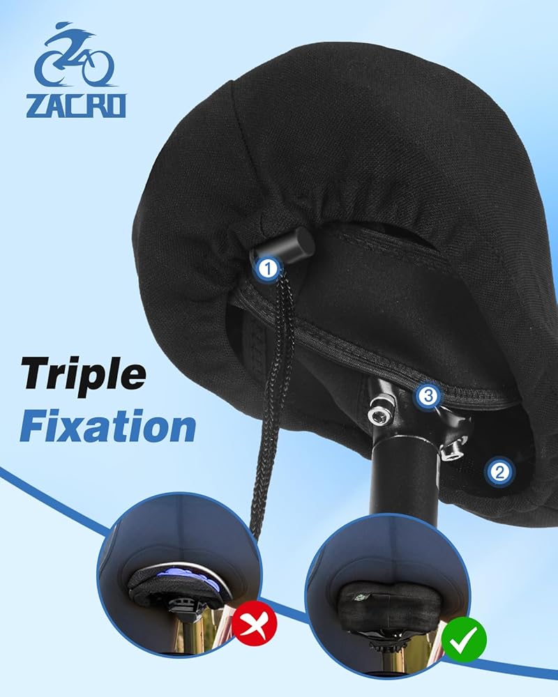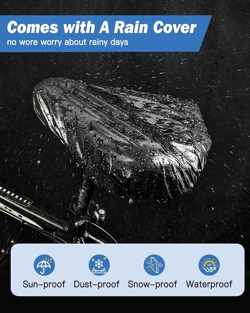 Waterproof Bike Seat Cover: Equipped with an extra water and dust-resistant seat cover, which can protect your seat from water and dust on rainy days and on dusty roads, thereby affording dependable protection against moisture. If you have any questions about this bike seat cushion cover, please feel free to contact us. Our Zacro team will provide you with a satisfactory solution.
