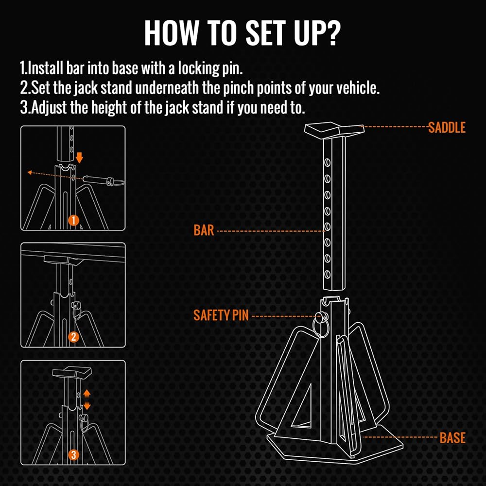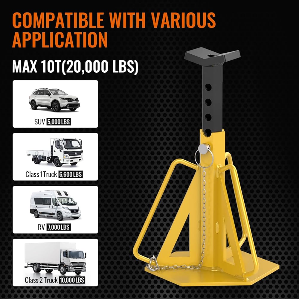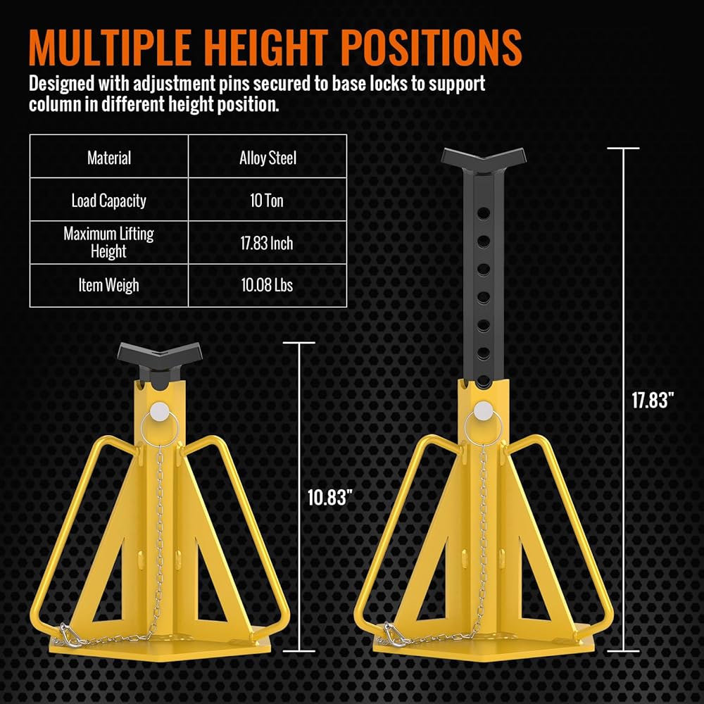 Sulythw Jack يقف بسعة 10 طن، يدعم الرافعات مع دبابيس الأمان، زوج واحد من حامل المقطورة لرفع سيارات الدفع الرباعي، RV، شاحنة صغيرة، سيارة، UTV وATV، قابل للتعديل من 10.83 بوصة إلى 17.83 بوصة