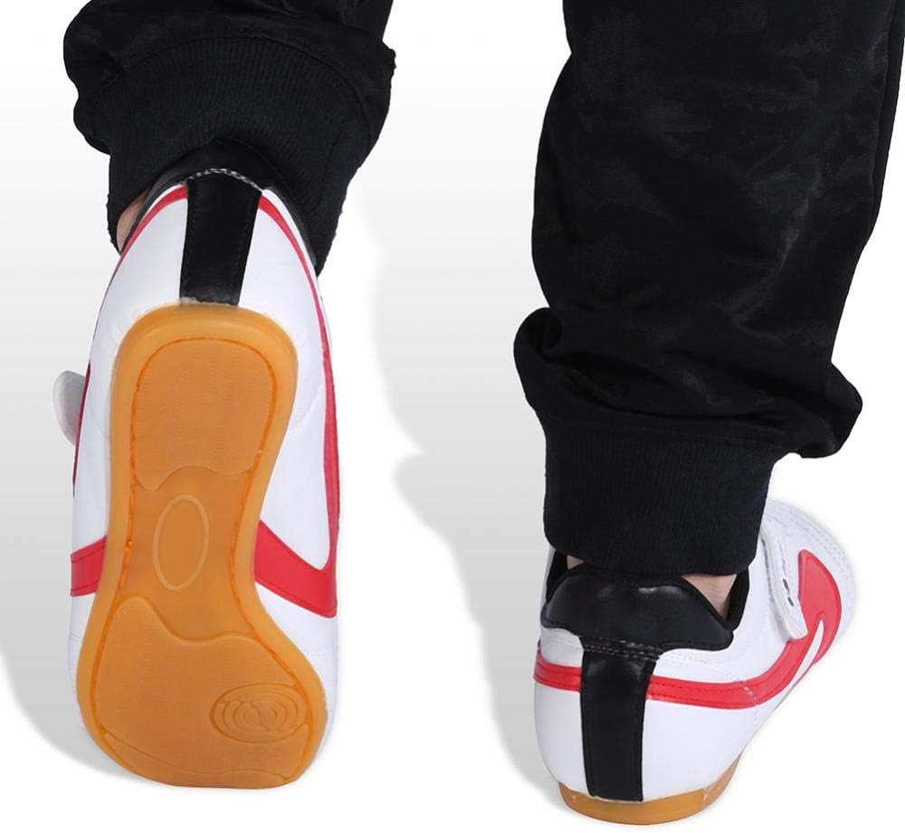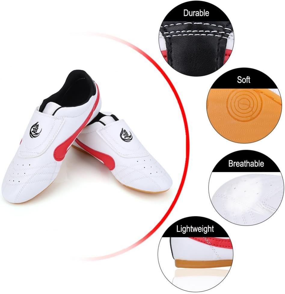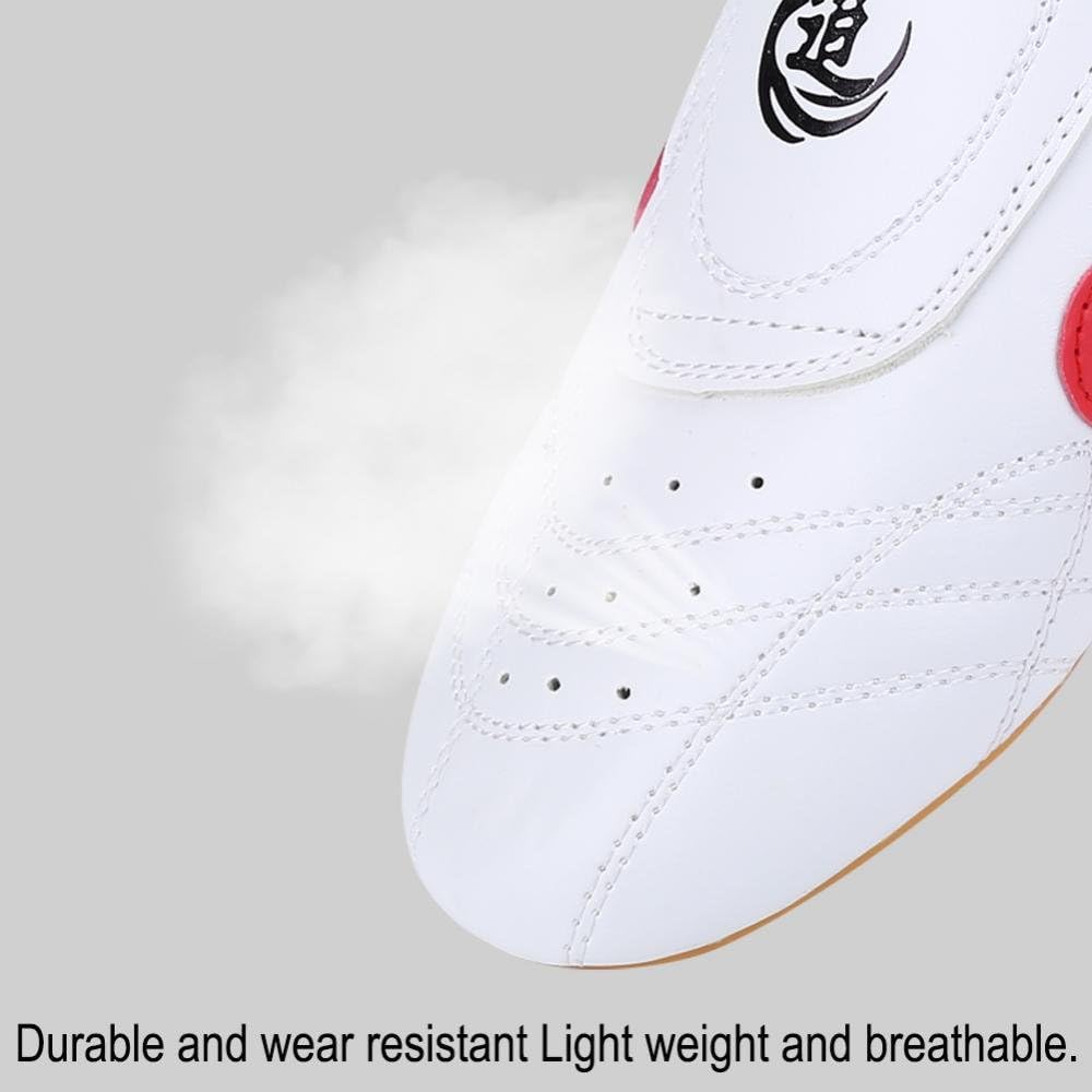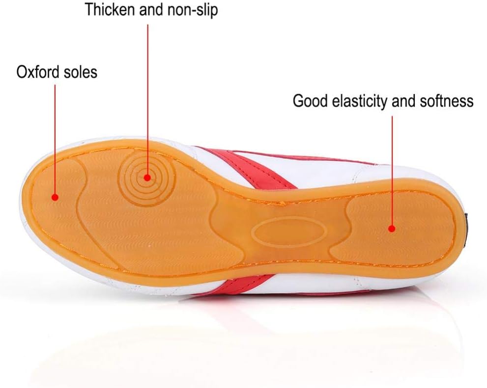 The shoes are made of high quality PU leather material, light weight and soft, wear resistant and durable to wear. This product adopts oxford soles, thicken and non-slip, good elasticity and softness, give you a comfortable wearing experience. Specially design for Taekwondo, Boxing, Kung Fu and TaiChi, make it play its functional roles, ensure a comfortable movement. Simple and classic design with good workmanship, suitable for both men and women. Perfect for beginner or professional, it's a pair of practical shoes.