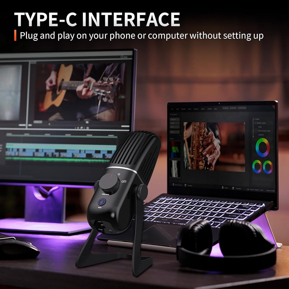 ميكروفون مكثف متعدد الاستخدامات: مزود بواجهة USB مدمجة، هذا الميكروفون مثالي لمجموعة واسعة من التطبيقات، بما في ذلك الغناء والبودكاست والتسجيلات الميدانية وجلسات الاستوديو المنزلية والمكالمات الجماعية.