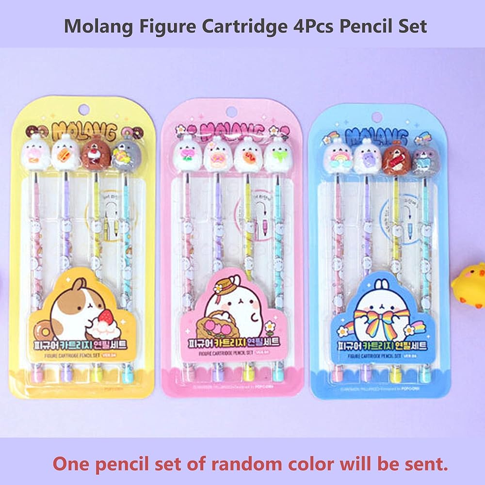 Embrace the world of kawaii stationery with the Molang Figure Cartridge Pencil 4pcs Set, and experience a more enjoyable writing experience today!