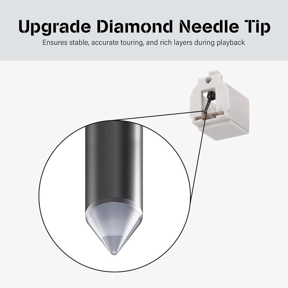 【شريط إبرة من ألياف الكربون】تمتع بالمتانة مع شريط إبرة من ألياف الكربون من قطعة واحدة ومغناطيس ديناميكي مزدوج. مقاومة للتشوه، فهي تتبع الأنماط الموسيقية بمرونة. يتميز بعمر تشغيل يتراوح بين 300-500 ساعة، ويمكنه تشغيل ما يقرب من 750 سجل فينيل قياسي مقاس 12 بوصة.