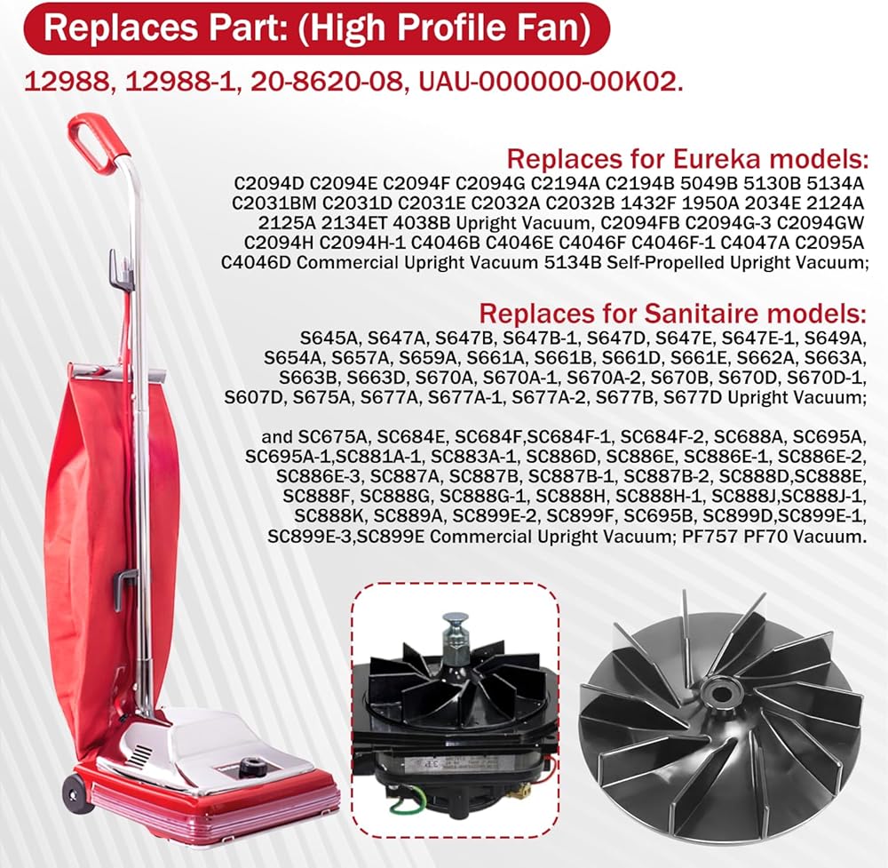 MaxLLTo 2 Pack 81092 12988-1 1400 Vacuum Cleaner Fan for Eureka and Sanitaire SC679H SC679G SC679J SC678A 1402A 2010XRB 5071E 7534A 7575 SC684E SC684E SC887A SC888