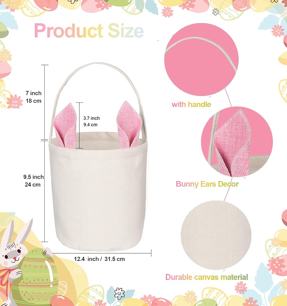 • تصميم مبتكر: تتميز سلة أرنب عيد الفصح بتصميم أذن أرنب فريد ومقابض حمل مريحة، وسلال عيد الفصح لمستلزمات حفلات عيد الفصح للأطفال. مقاس سلال عيد الفصح: 11.8 بوصة × 8.7 بوصة/30 سم × 22 سم