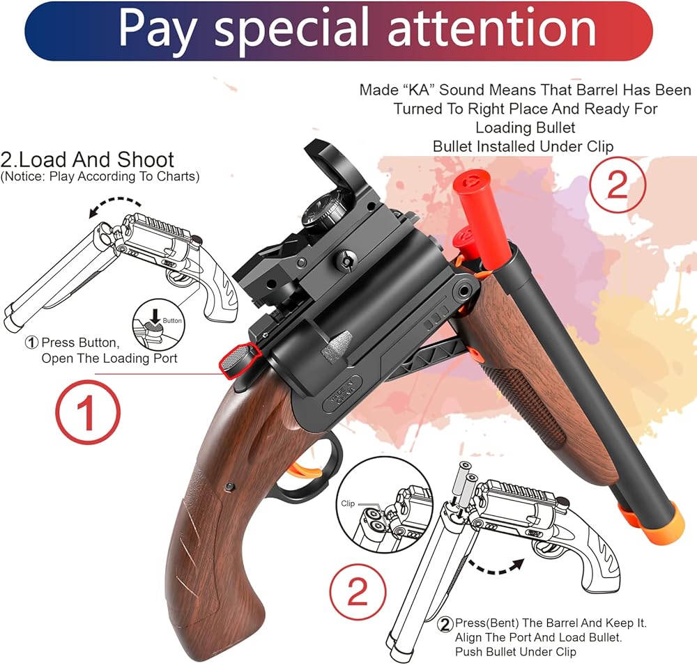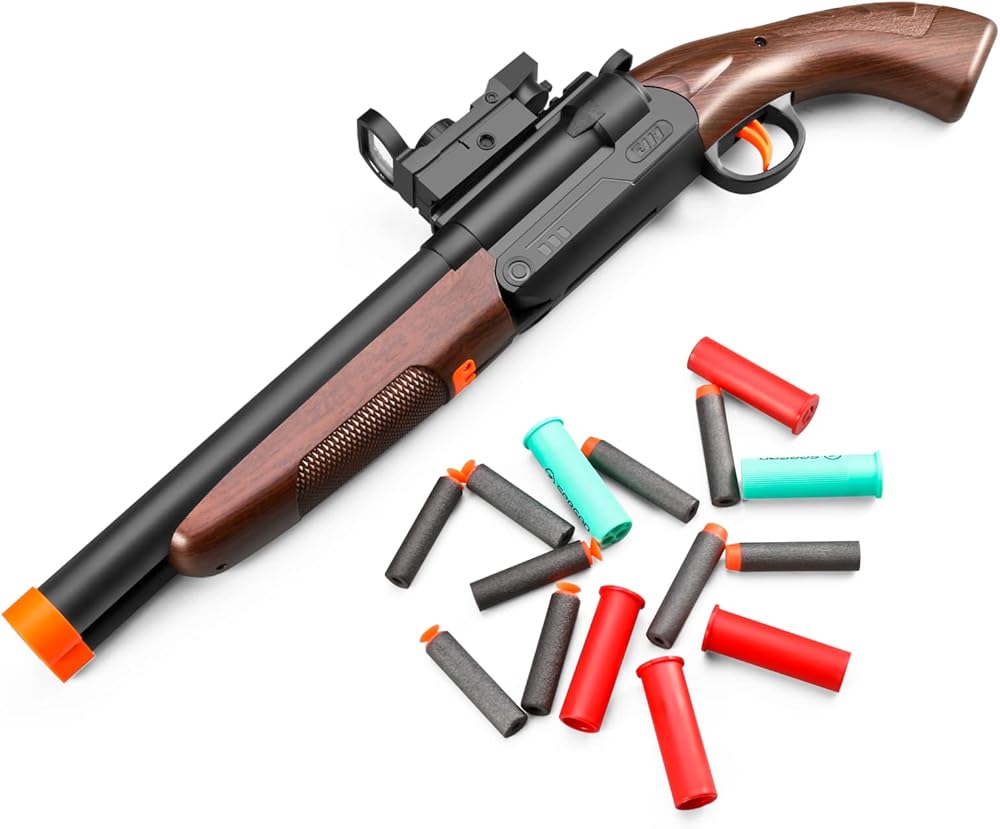 - مسدس إسفنجي متين: مصنوع من سهام إسفنجية ناعمة وقاذف أكواب شفط للعب الآمن.