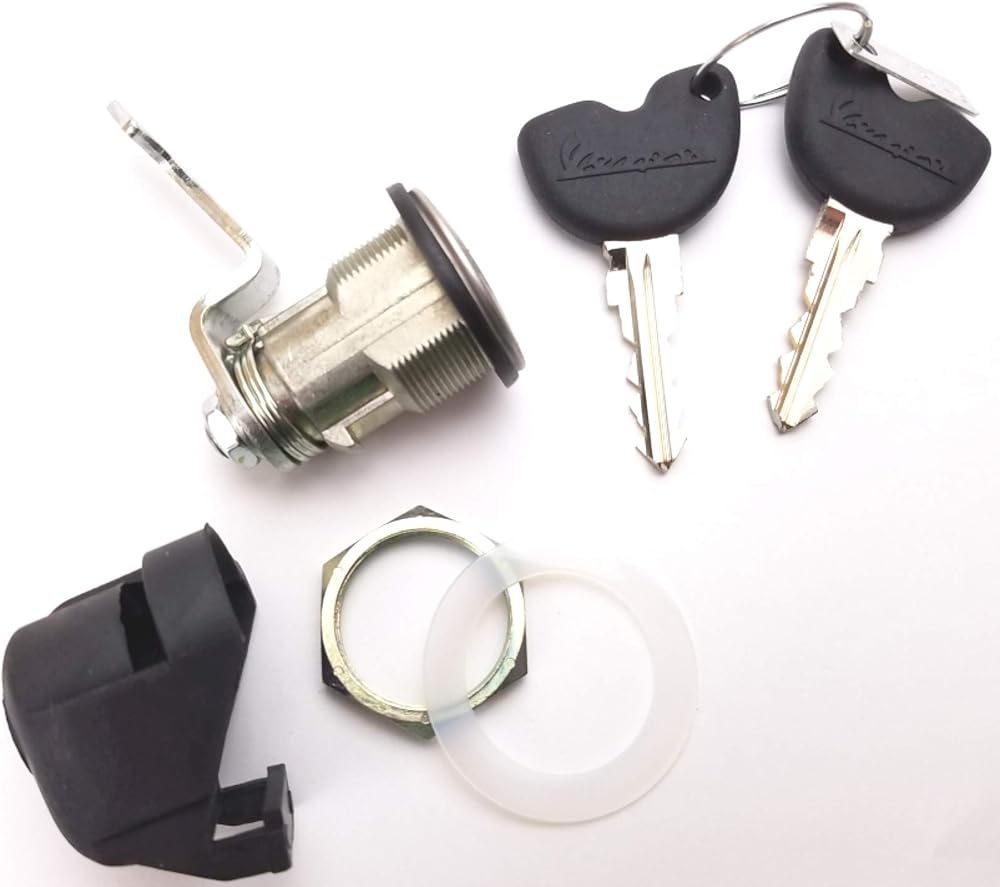 This Piaggio Vespa OEM Top Box Lock and Key set 299676 Comes with 2 keys.