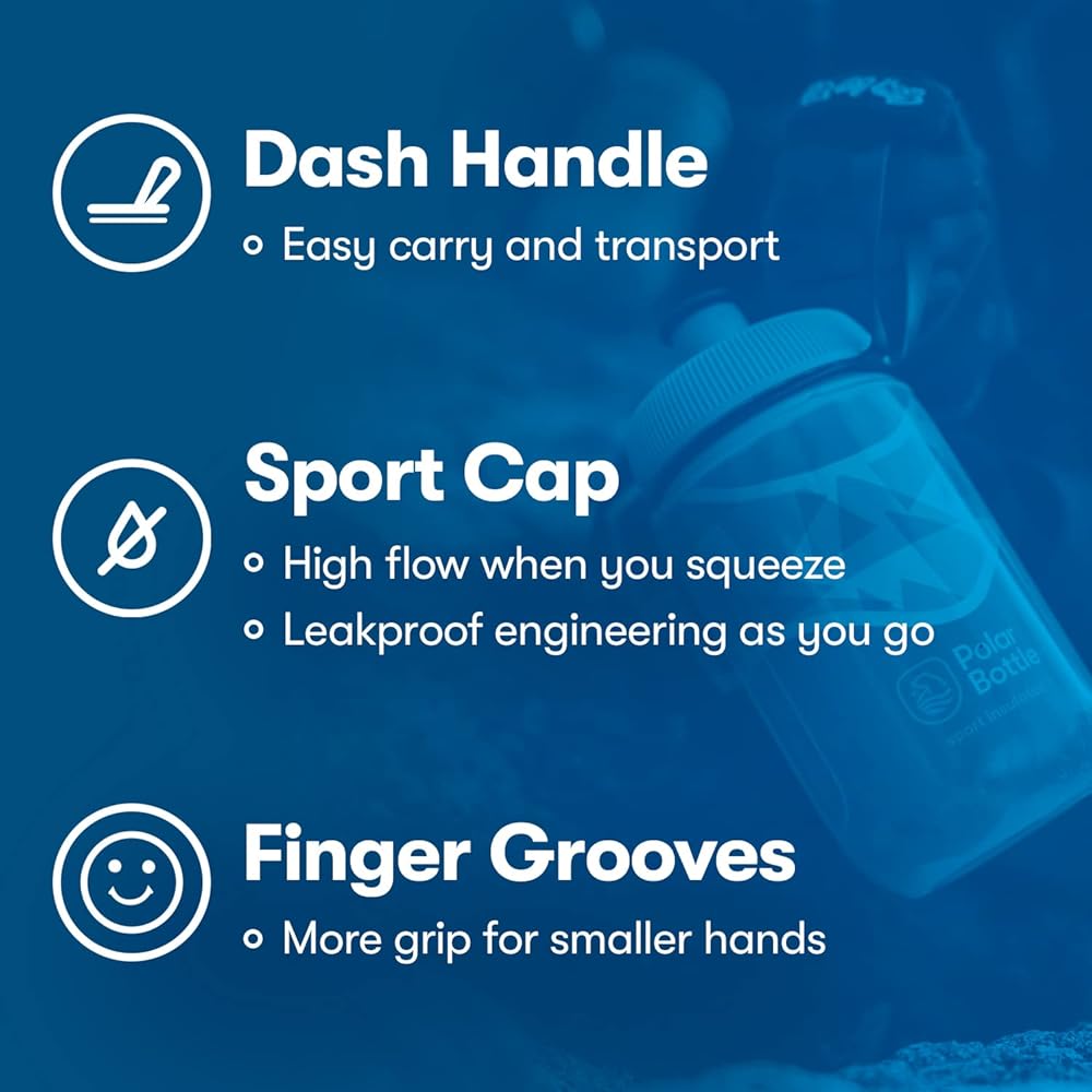 Our Kids Insulated Polar Bottle helps athletes of all ages stay refreshed and hydrated throughout the day, no matter the activity. Just the right height and size for kid's bike cages, lunch boxes and features indented finger grooves to make it easier for smaller hands to grip and hold. The bottle's bright and colorful kid friendly designs include Tri-Layer Insulation to keep their liquids cool twice as long and an integrated Dash Handle for easy transport and carrying. An easy to drink sport cap makes for quick hydration - pull for a cool stream and push to lock for a spill-free seal.