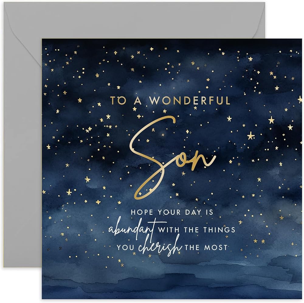 بطاقة عيد ميلاد الشركة الإنجليزية القديمة، تصميم نجوم للابن، بطاقة تهنئة للرجال، البالغين، المراهقين، الأطفال، فارغة من الداخل، رقائق ذهبية، بطاقة عيد ميلاد خاصة من العائلة