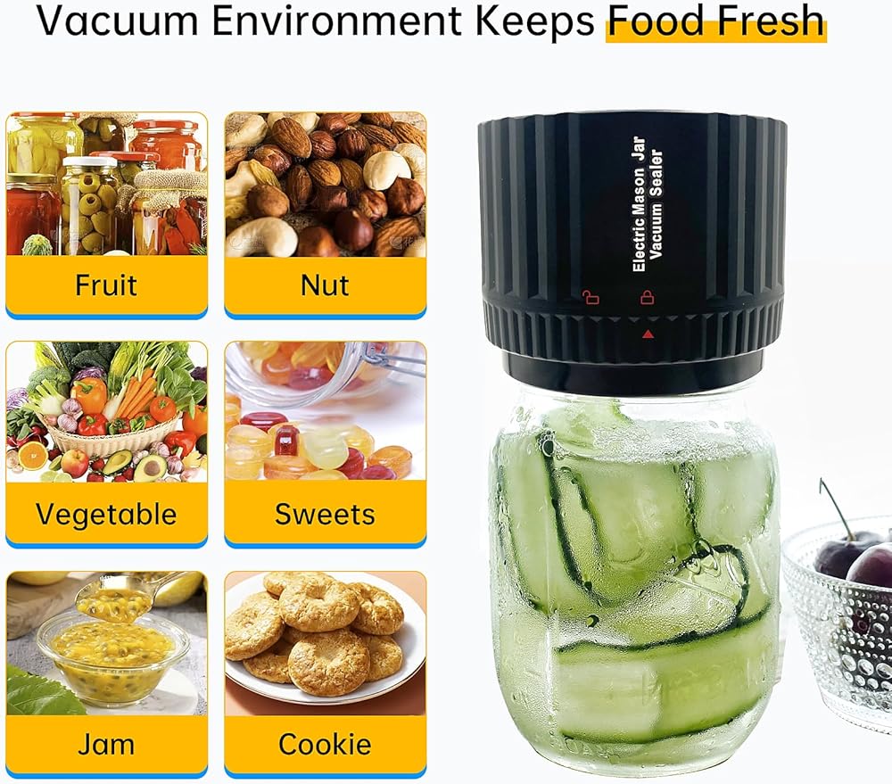 【لجميع متطلبات إغلاق الفراغات الخاصة بك】تأتي مجموعة سدادة مكنسة ماسون الكهربائية الخاصة بنا مع مكنسة كهربائية ذات فتحة واسعة، ومحول قياسي لإغلاق الفم، و5 أغطية مرطبانات ماسون واسعة الفم و5 أغطية برطمان ماسون قياسية للفم، وكابل شحن وتعليمات. ستساعدك مجموعة غلق مكنسة الطعام هذه على إزالة الهواء من برطمانات الماسون الخاصة بك وإطالة نضارة طعامك.
