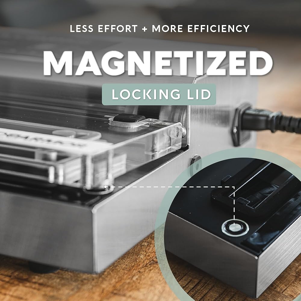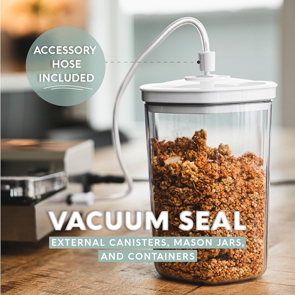 • آلة عالية الجودة، أقصى فوائد - لا تزيد من نضارة طعامك فحسب، بل تمنع حرق المجمد والجفاف. بالإضافة إلى الرفيق المثالي عند طهي الفيديو الرائع. بالإضافة إلى منفذ ملحق يمكن استخدامه لتفريغ العلب والجرار والتتبيل. العلب غير متضمنة.