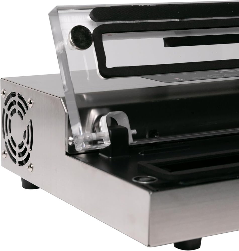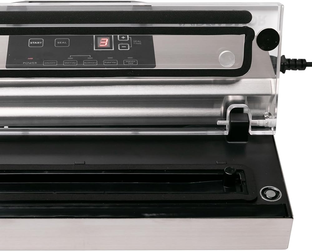 • ماكينة إغلاق سهلة الاستخدام - اضغط على زر واحد للمكنسة الأوتوماتيكية وزر الغلق. تتميز لوحة التحكم أيضًا بما يلي: Pulse-Vac، وSeal Only، وخيار Impulse Sealer وإعدادات وقت الختم القابلة للتخصيص لإنشاء أختام إيجابية على سماكات ومواد مختلفة للأكياس.