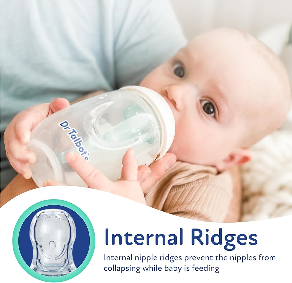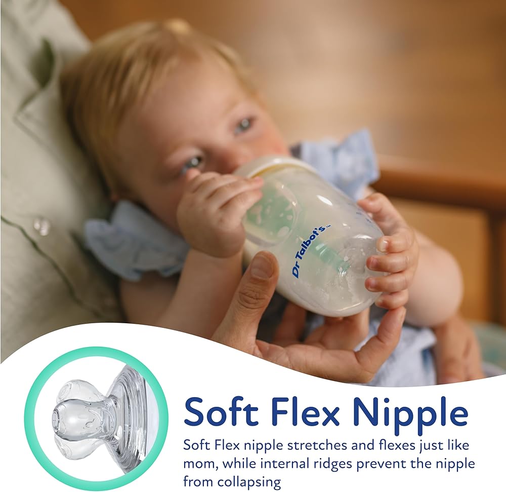 • ANTI-COLIC BOTTLE NIPPLES FOR BABIES 6+ MONTHS: Dr. Talbot's Anti-Colic Bottle Replacement Nipples feature two Fast Flow Soft Flex Simple Latch nipples for fuss-free feeding