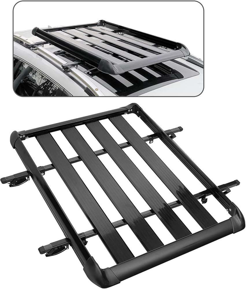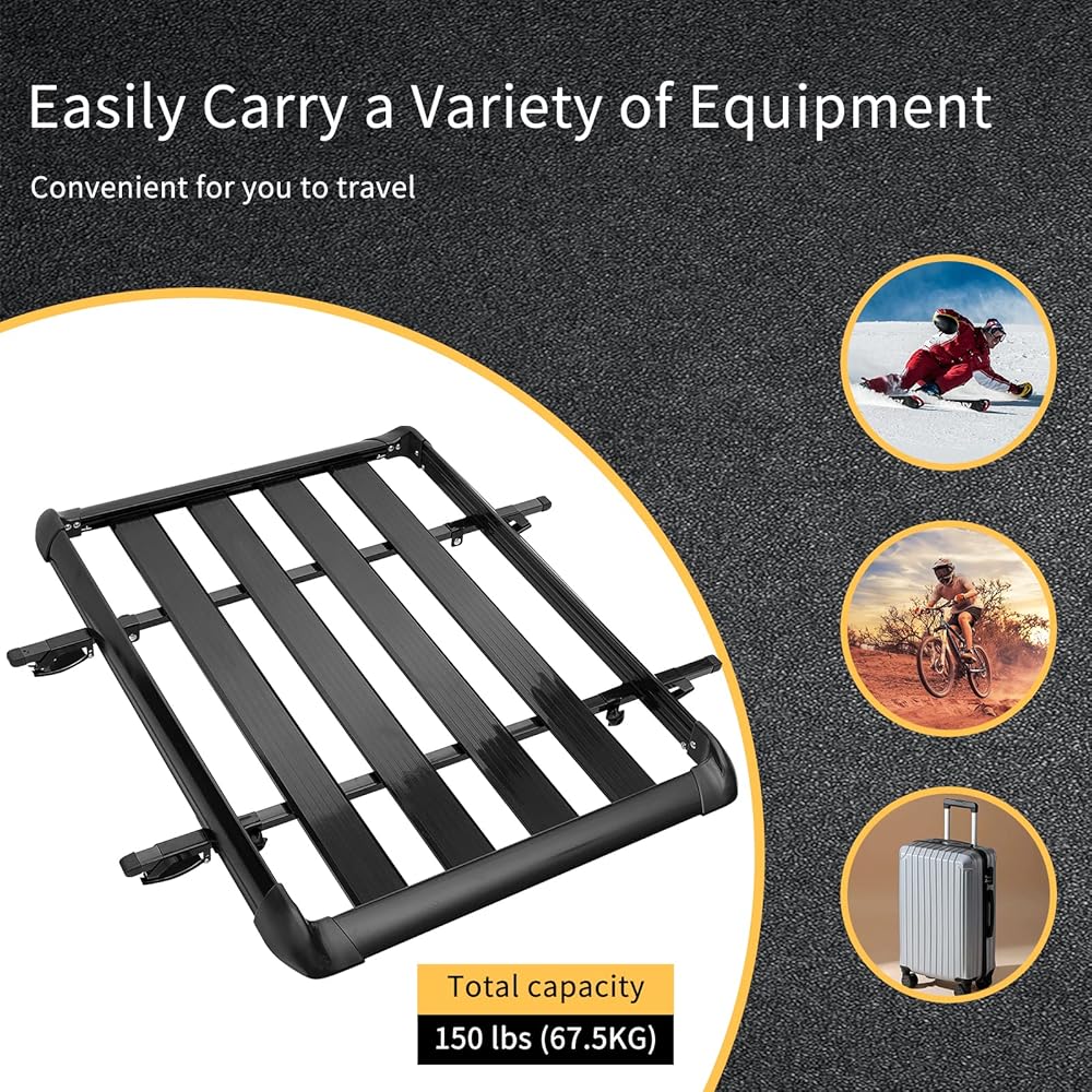 حامل أمتعة علوي للسيارة من MAXSOUGH مقاس 50 بوصة، حامل أمتعة خفيف الوزن من الألومنيوم للسيارة لسيارات الدفع الرباعي والشاحنات والسيارات سعة 150 رطل، أسود