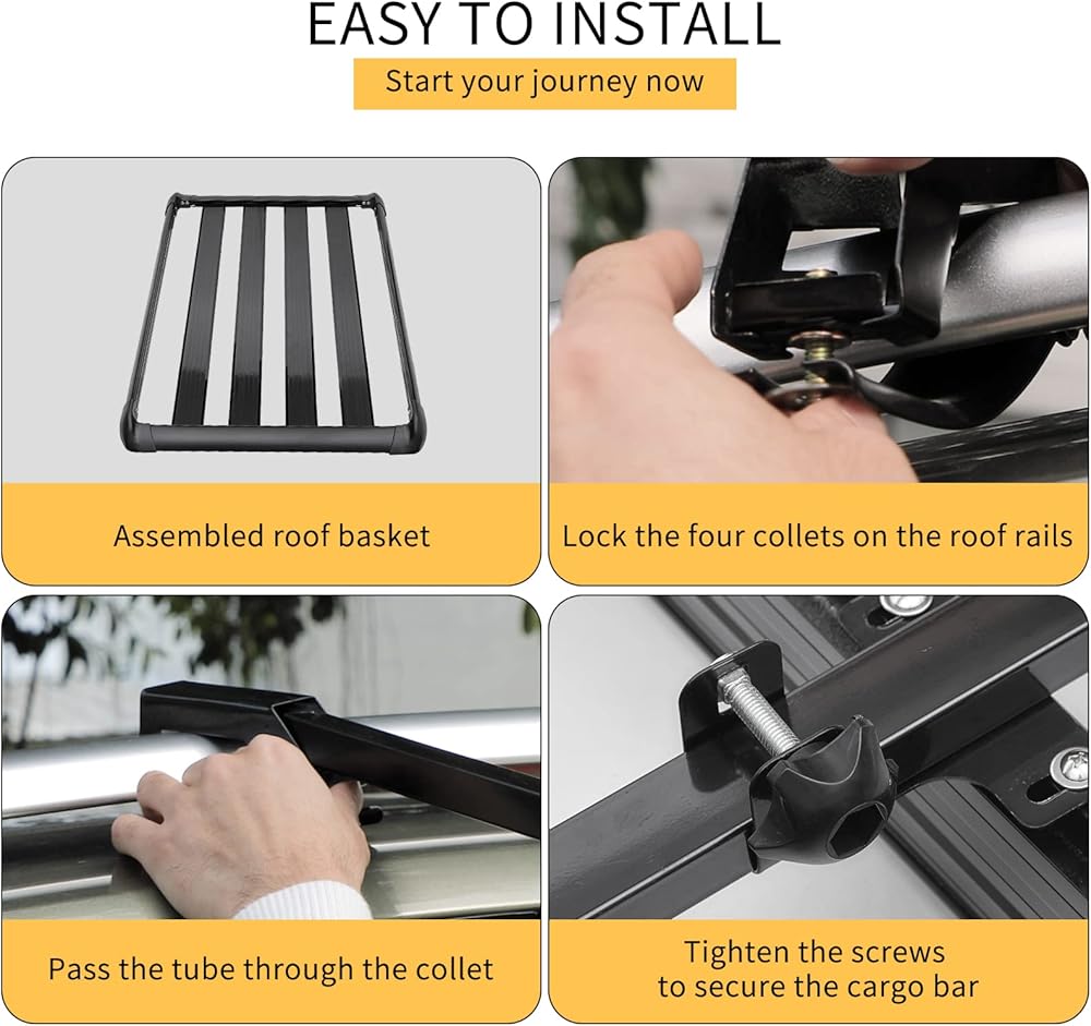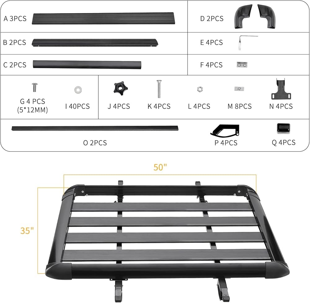 • ميزات سلة السقف: أبعاد سلال البضائع على السطح هي: 50 بوصة × 35 بوصة، وتزن فقط 17.2 رطلاً (7.8 كجم)، مع سعة تحميل قصوى تبلغ 150 رطلاً. نظرًا لأن حامل البضائع في سلة السقف يتمتع بمساحة أكبر، فلا داعي للقلق بشأن اصطدام البراغي أو رفوف التحميل بالسقف، ولن يمنعك ذلك من فتح فتحة السقف. بغض النظر عن ظروف الطريق، فإن حامل الرف السقفي هذا لن يهتز مثل أمتعتك لأنه يمسك الدرابزين بأمان.
