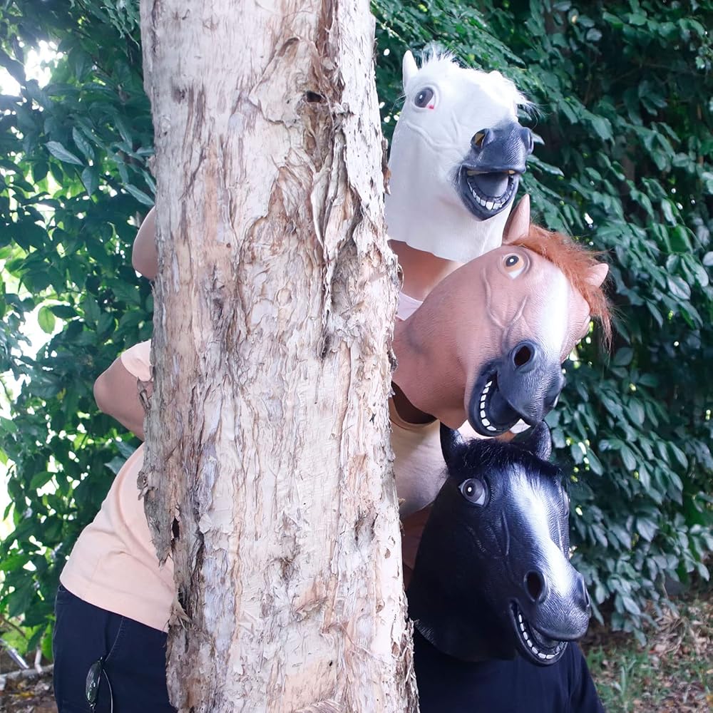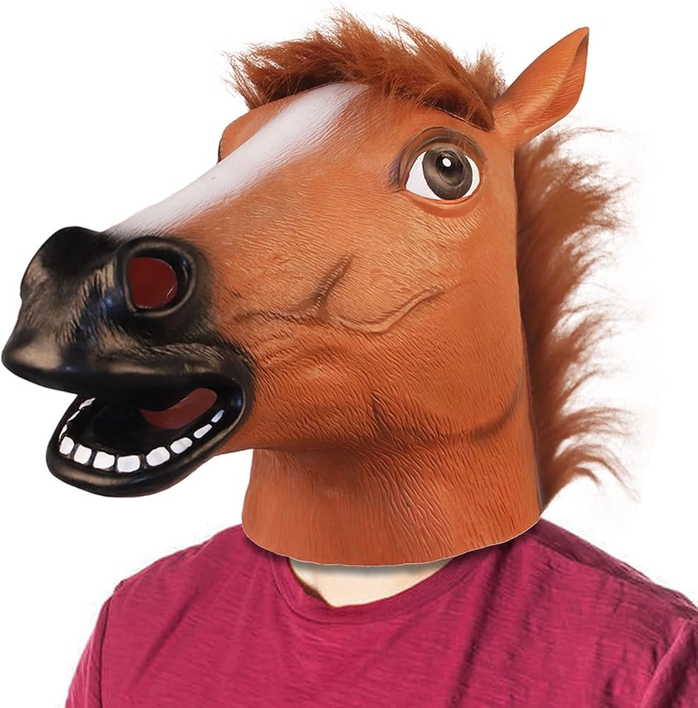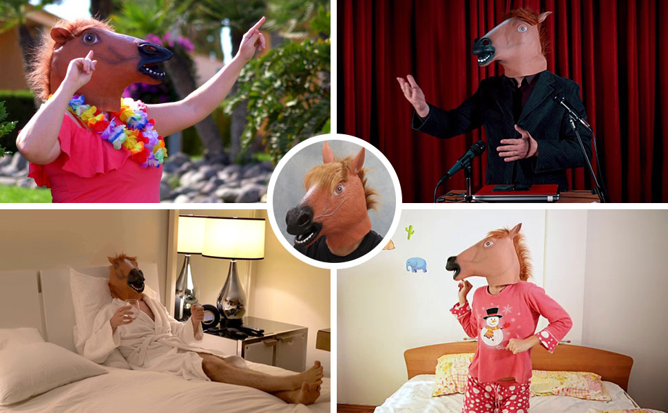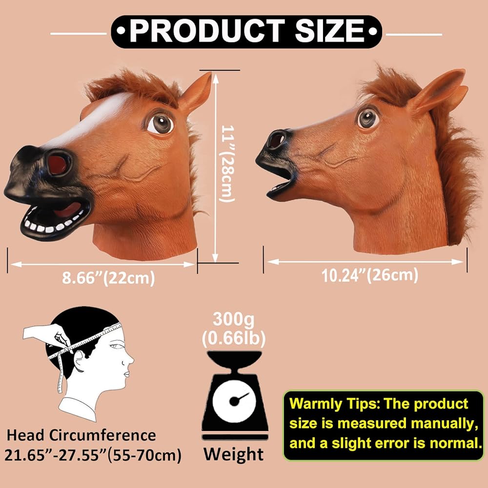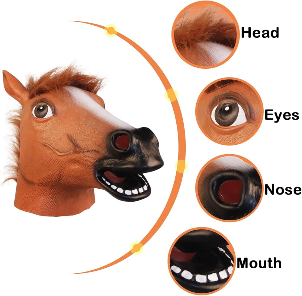 ➤ تم تصميم أقنعة رأس الحصان لدينا بعيون وفم وأسنان مخيفة وفتحات أنف وشعر كثيف.