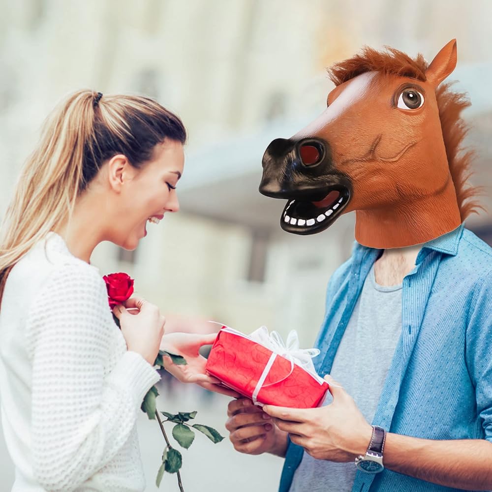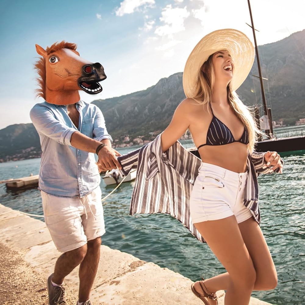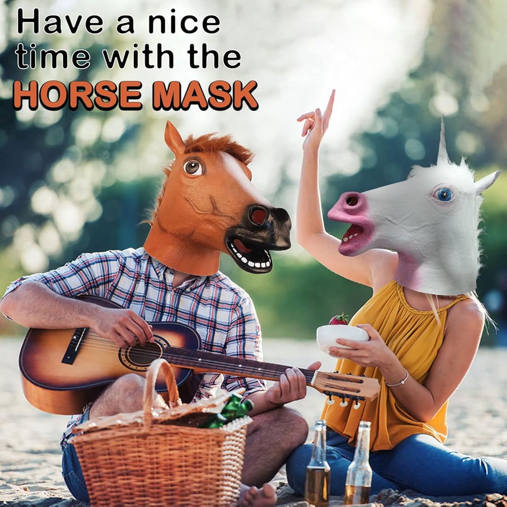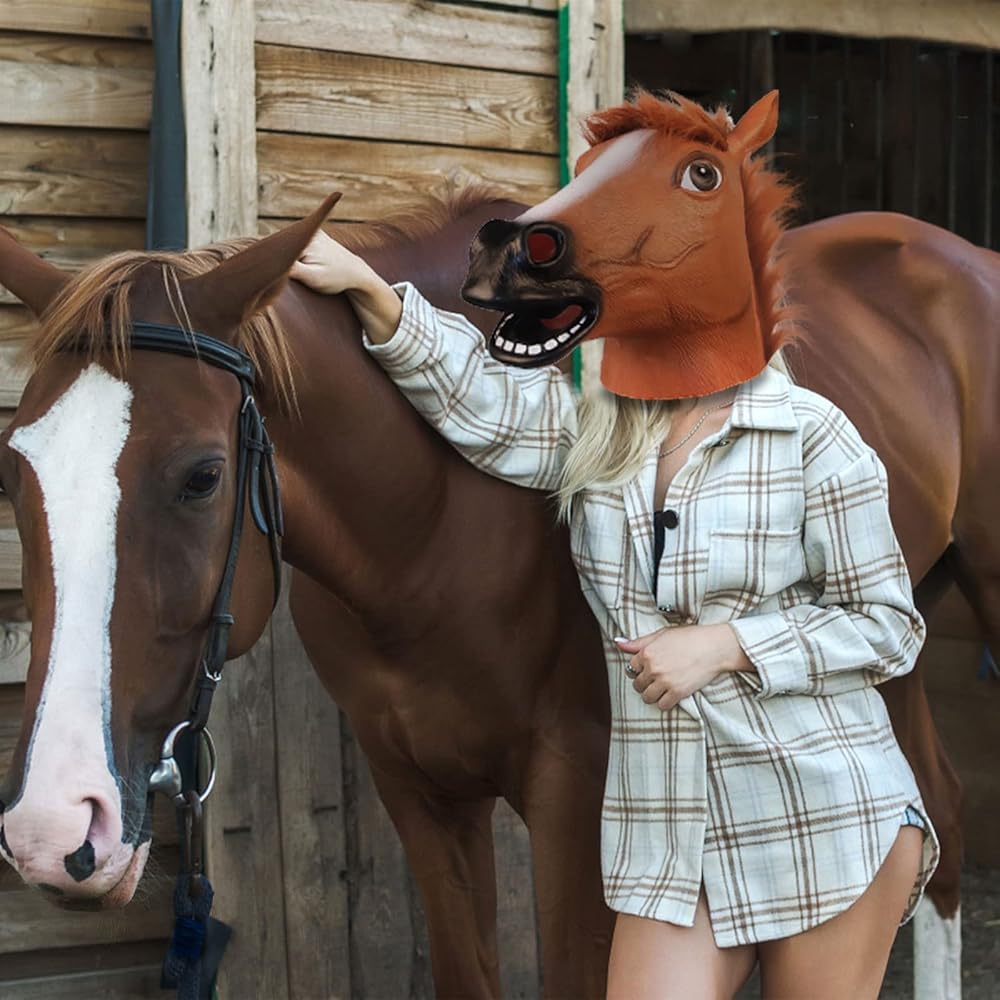 ➤ تم تصميم أقنعة رأس الحصان لدينا بعيون وفم وأسنان مخيفة وفتحات أنف وشعر كثيف.