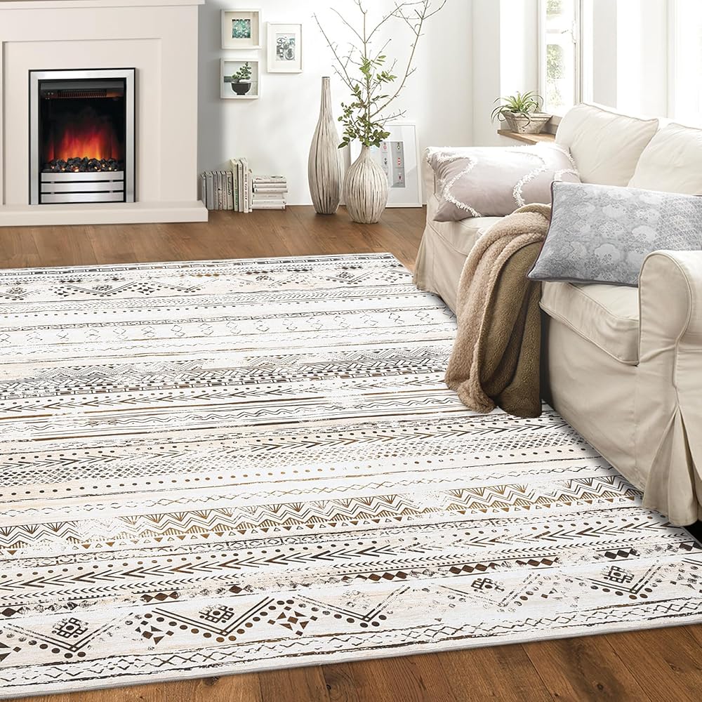 جودة دائمة: تم تصميم هذه السجادة من أجل المتانة، وهي مناسبة تمامًا للمناطق ذات حركة المرور العالية مثل غرفة المعيشة، وتوفر راحة طويلة الأمد دون القلق من التساقط.