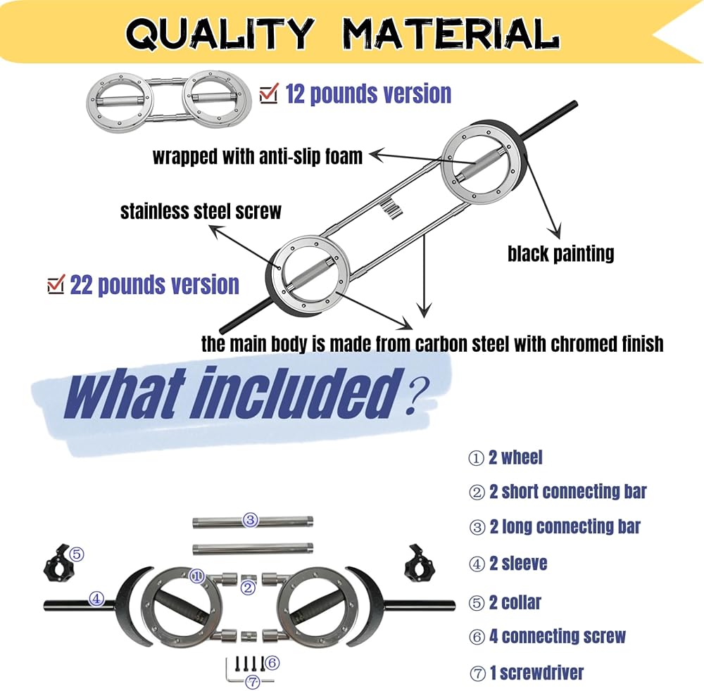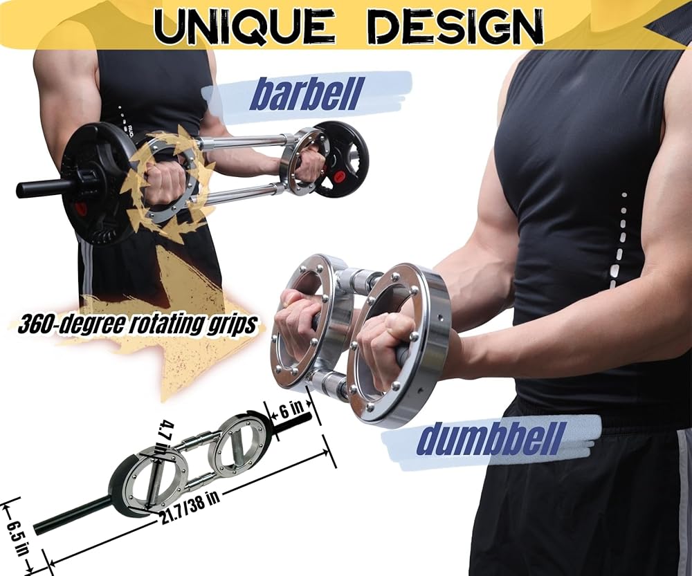 • 【تصميم فريد】يجمع قضيب الأثقال العالمي بين تعدد استخدامات الدمبل وثبات الأثقال. يتميز بمقبض دوار بزاوية 360 درجة، مما يسمح لك بالدوران أثناء الانحناء والرفع، مما يزيد من الراحة والكفاءة أثناء تمرينات تدريب القوة مع تصميم موفر للمساحة.