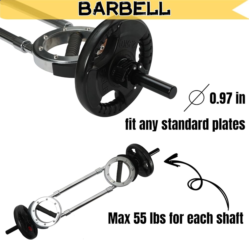 • 【الحديد】آلة حرق الأثقال مصنوعة لتلائم أي ألواح قياسية (غير متضمنة). ويمكن إضافة اللوحات الأولمبية باستخدام المحول الأوليمبي (غير متضمن). يحمل Universal Barbell الذي يبلغ وزنه 22 رطلاً ما يصل إلى 110 رطلاً من الوزن الإضافي (بحد أقصى 55 رطلاً لكل عمود).