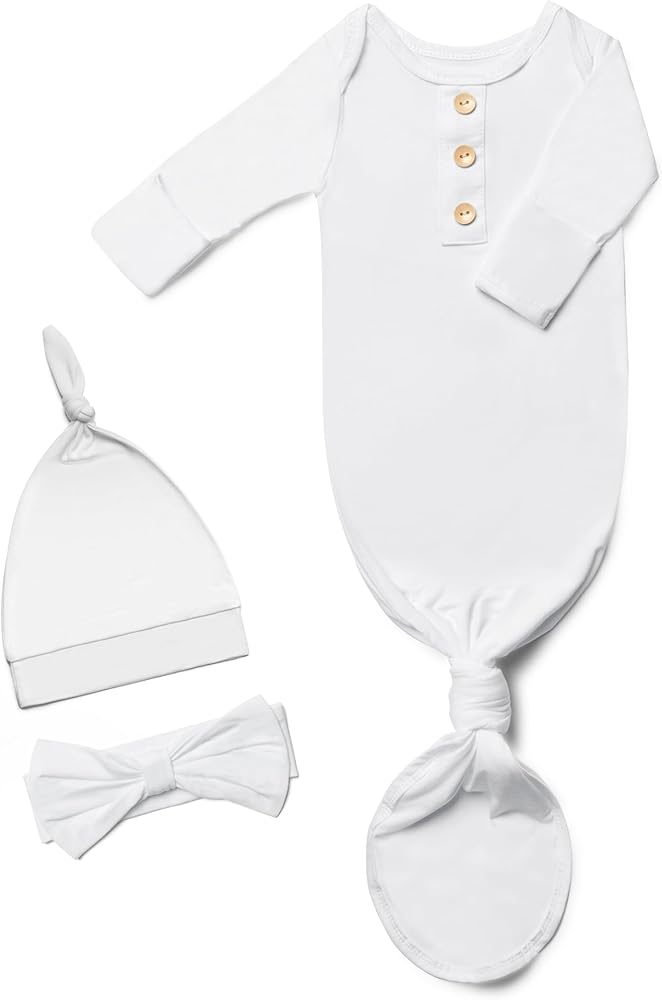 ✿ ملابس رائعة للعودة إلى المنزل: فستاننا المعقود بأكمام طويلة جاهز لالتقاط الصور! تأتي مع قبعة متطابقة وعصابة رأس مقوسة لإكمال الجاذبية. التصميم الطويل للغاية يجعل عملية الربط أمرًا سهلاً، وينمو مع طفلك. بالإضافة إلى ذلك، يوجد زر مزخرف لمزيد من الأناقة. كما أنها هدية رائعة لحفل استقبال المولود الجديد، مثالية لحديثي الولادة عند وصولهم إلى المستشفى.