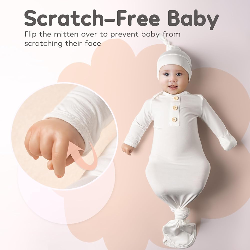 ✿ قفازات السلامة: تأتي مع قفازات قابلة للطي لمنع الخدوش، وتعزيز السلامة والدفء لمولودك الجديد.