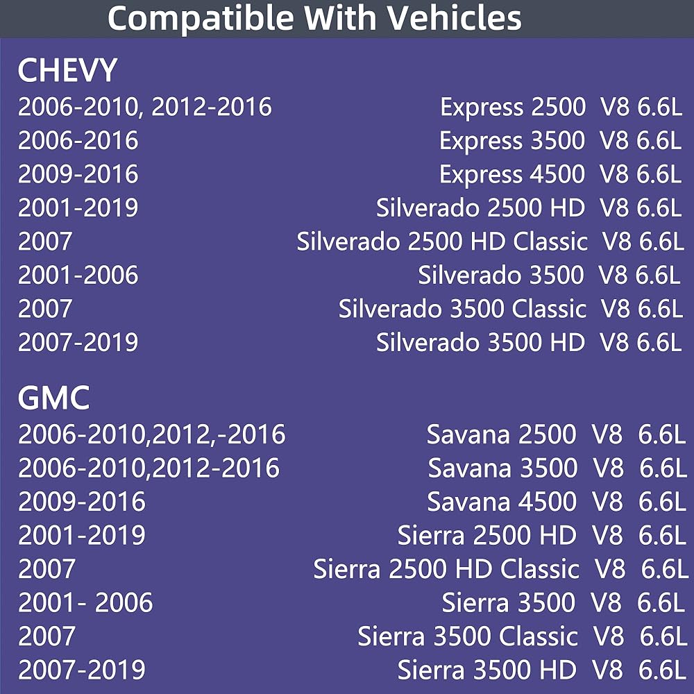 2001-2019 Chevrolet Silverado 2500 HD V8 6.6L