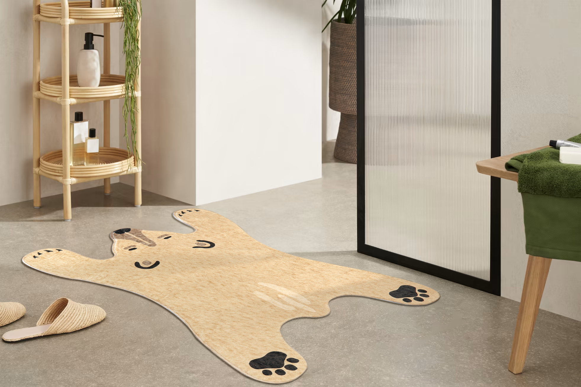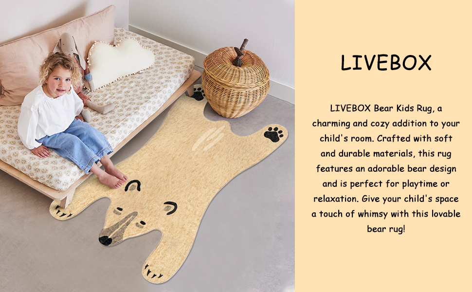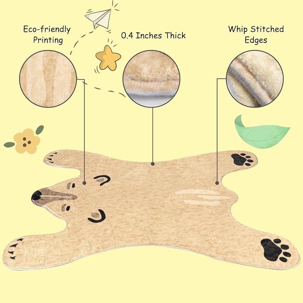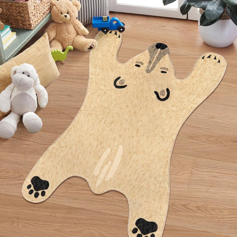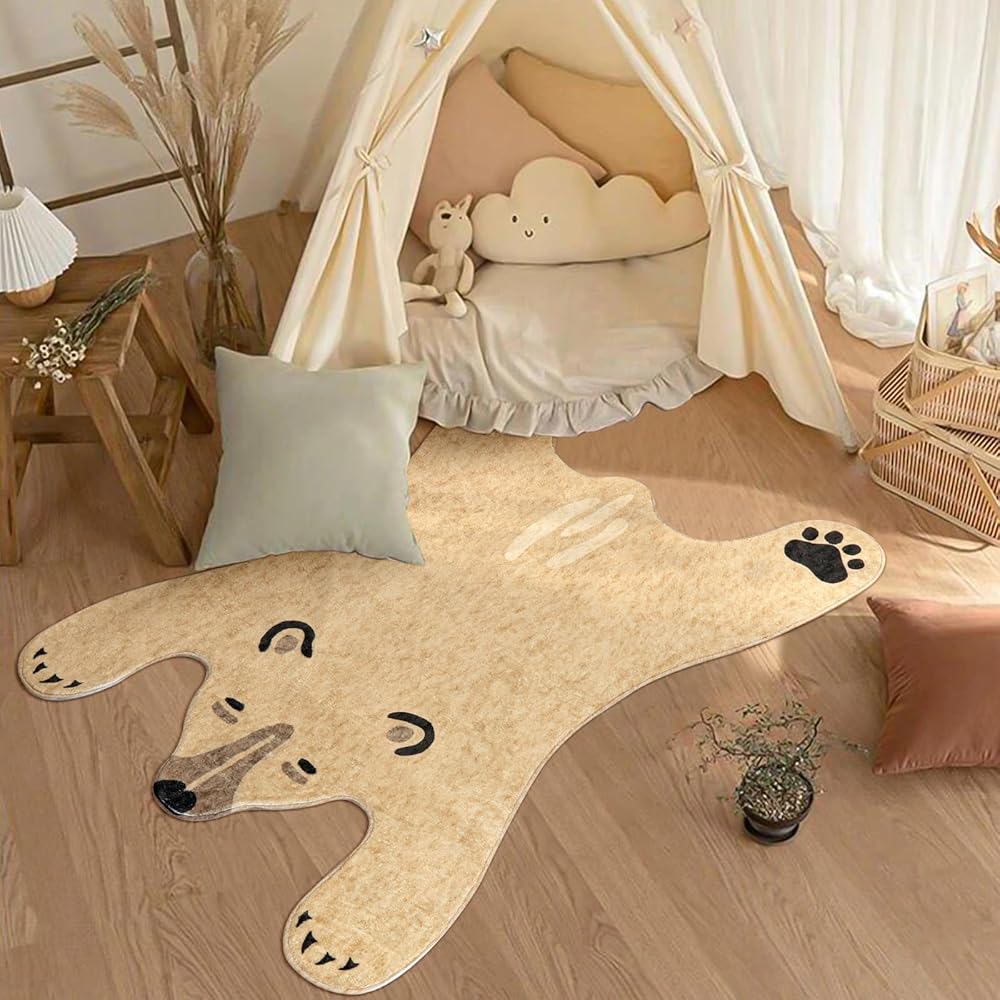 سجادة على شكل دب: مستوحاة من الدب الأبيض، تم تصميم سجاد الأطفال لمنطقة اللعب على شكل دب، مما يوفر عالم حيوانات ممتع وطبيعة ملونة للأطفال لتعزيز إبداعهم وحبهم للطبيعة.