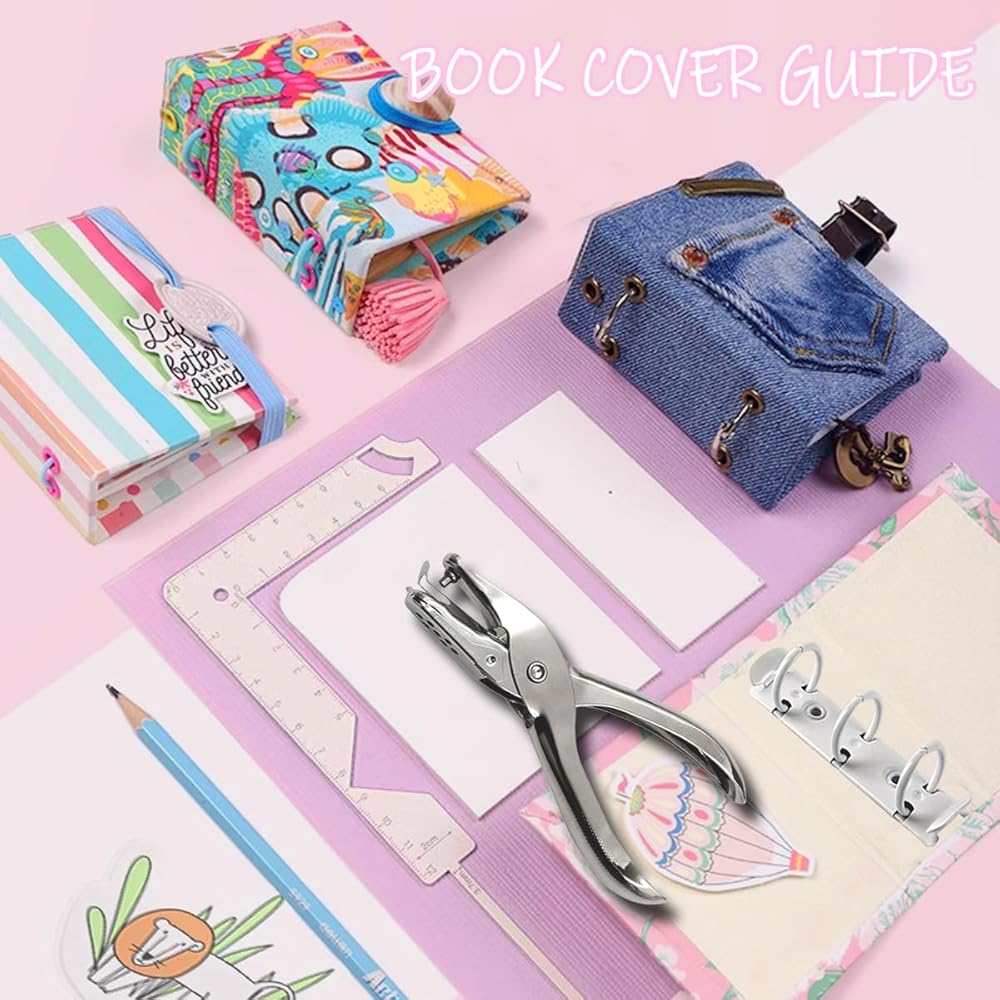 مجموعة دليل غلاف الكتاب مع ثقب وموثق، ومسطرة غطاء تجليد الكتب من الفولاذ المقاوم للصدأ 5 في 1، وثقب و2 قطعة من 3 حلقات معدنية لآليات الربط للمجلة والألبوم والمخطط والتقويم