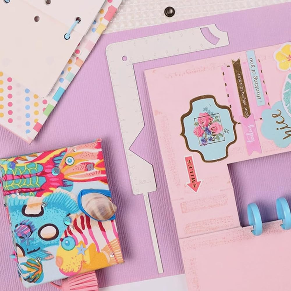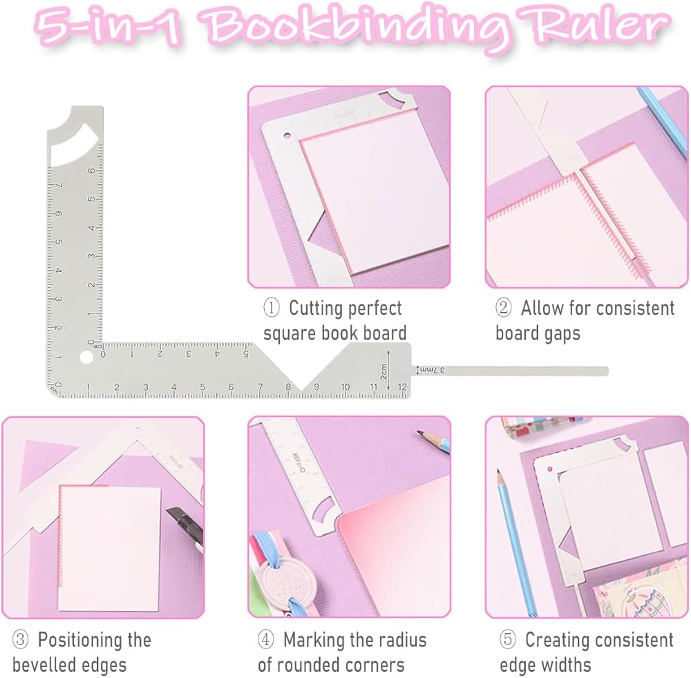 • 【مسطرة تجليد الكتب 5 في 1】- 📏وضع مثالي للوحة الكتب، 📏إنشاء فجوات متسقة، 📏تقليم الزوايا بالزاوية المناسبة، 📏زوايا دائرية بسهولة، 📏تحديد مكان للإغلاق المرن.