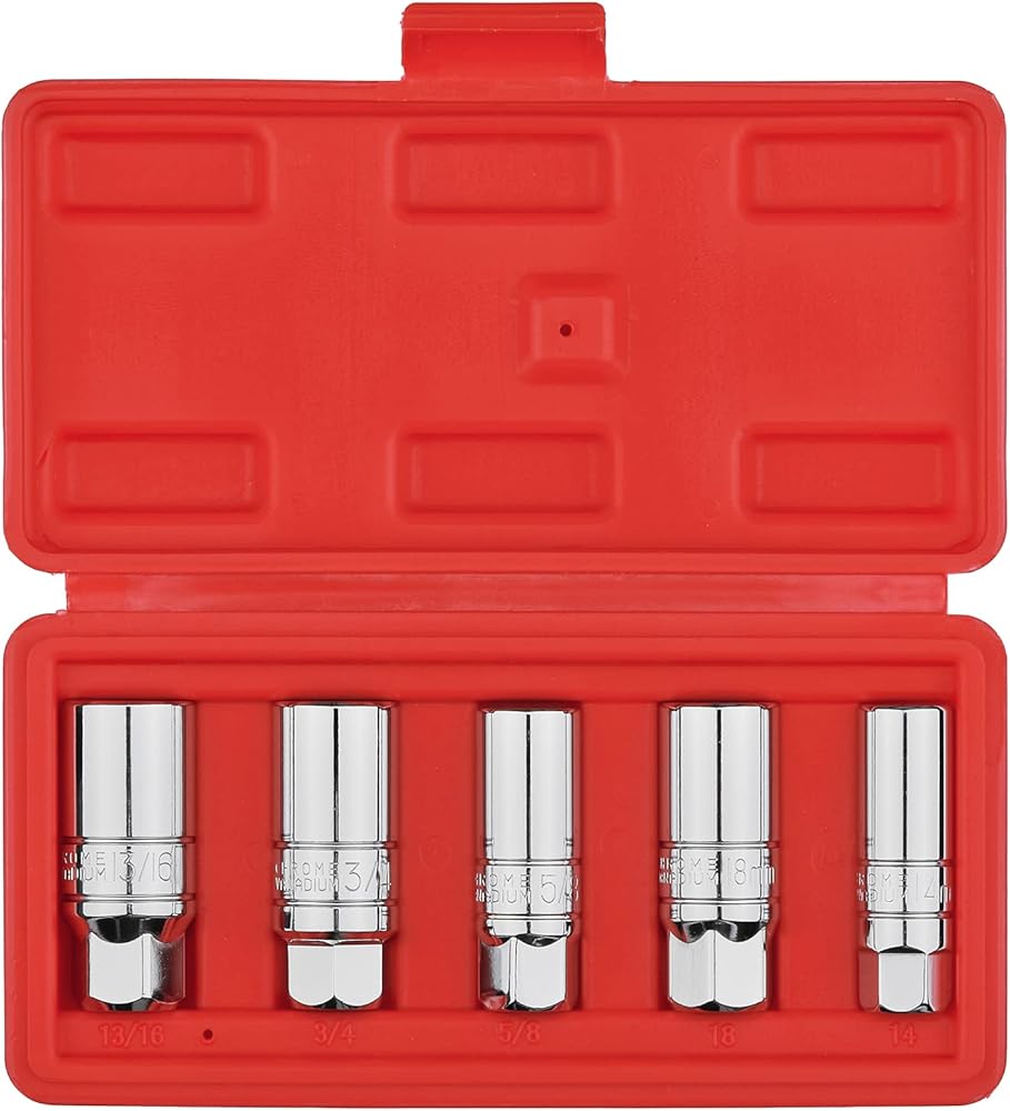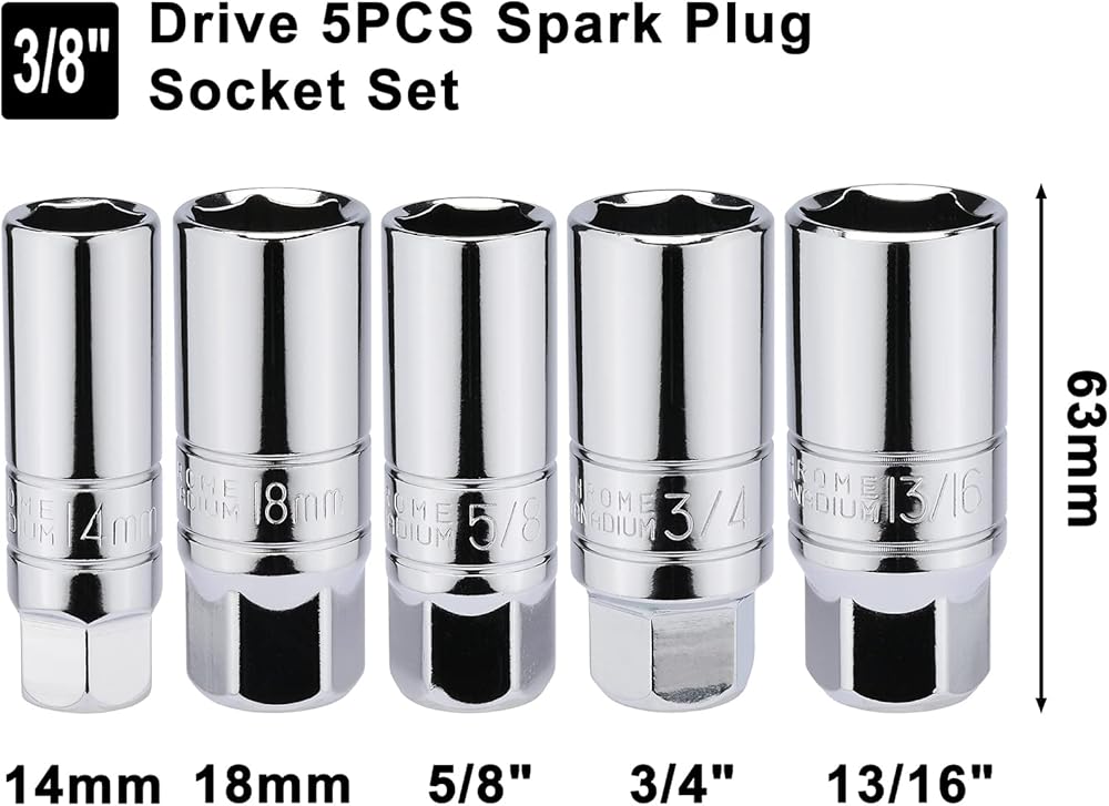 • يشتمل على: 5 قطع مقبس قابس شرارة المحرك 3/8 بوصة: 5/8 بوصة، 3/4 بوصة، 13/16 بوصة، 14 مم، 18 مم؛ مع حقيبة تخزين متينة.