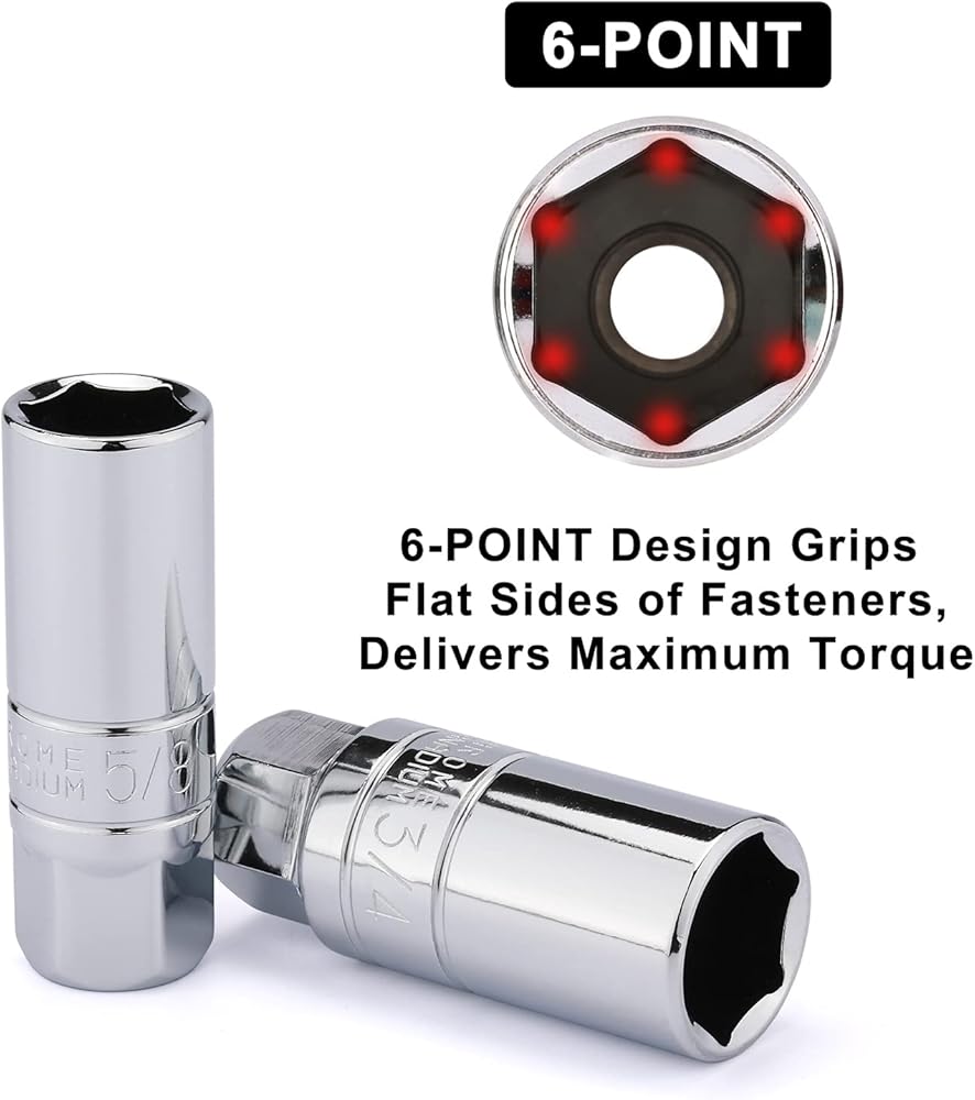 • فتحة من 6 نقاط تناسب تمامًا الصمولة السداسية لقابس الإشعال، حتى تتمكن من تطبيق أقصى عزم دوران.