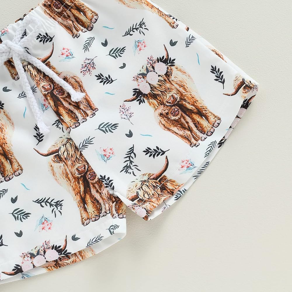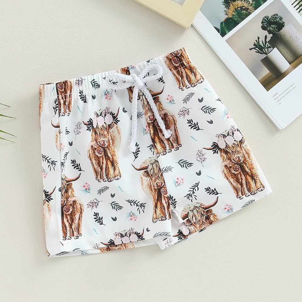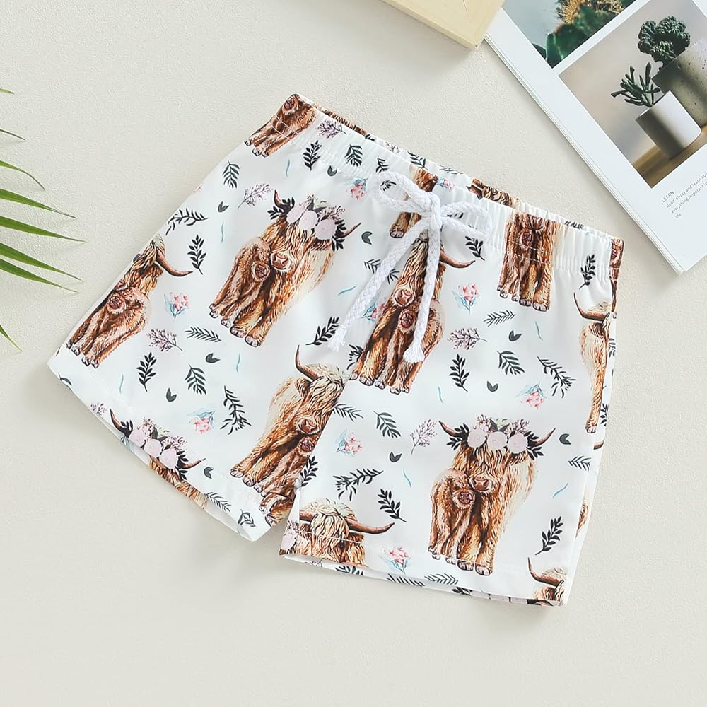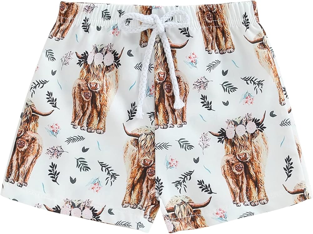 Licupiee شورت غربي للأطفال الصغار من Licupiee، ملابس شاطئ صيفية مطبوعة على شكل بقرة، ملابس سباحة على الشاطئ، شورتات سباحة (بقرة، 2-3 سنوات)