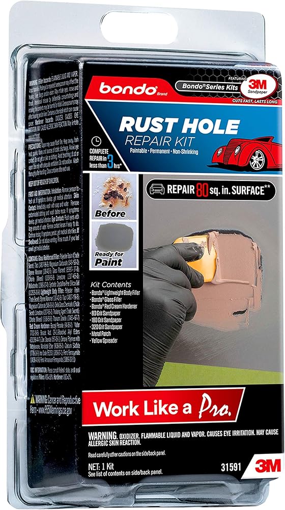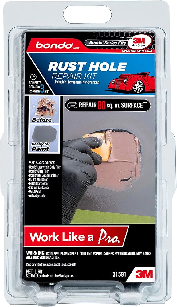3M Bondo Rust Hole Repair Kit, Paintable, Permanent, Non-Shrinking, 1 Kit