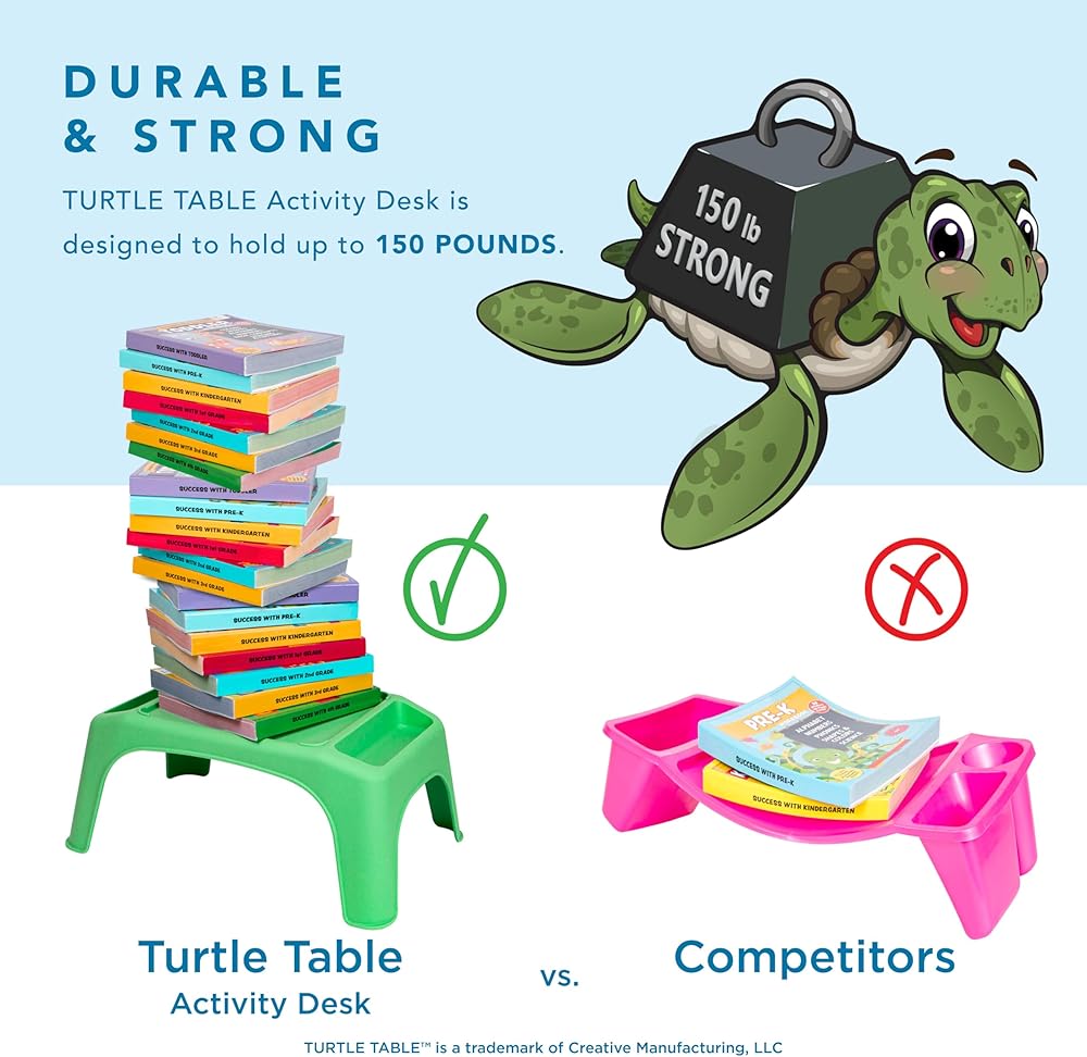 Compact Size: With dimensions of 22.5" L x 15.25" W x 9.6" H, the Turtle Table desk fits neatly in any setting - classrooms, playrooms, or on the go.