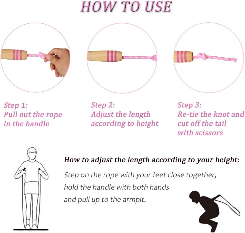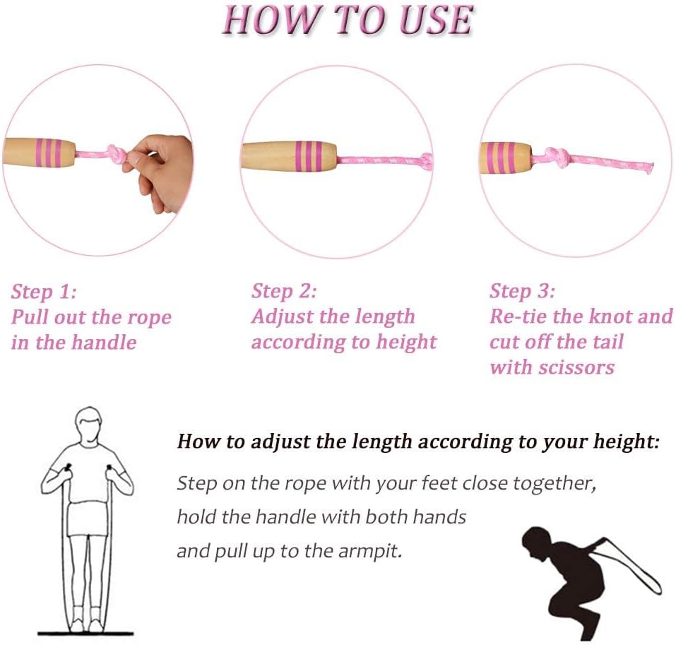 • 【حبل قفز للأطفال للأولاد والبنات】 سوف تحصل على قطعتين من حبال القفز للأطفال بطول 8.5أقدام/2.6 متر مع مقبض خشبي (أزرق ووردي)، والتي يحبها الأولاد والبنات. ألعاب الأنشطة الممتعة يمكن لعبها مع الأصدقاء أو العائلة.