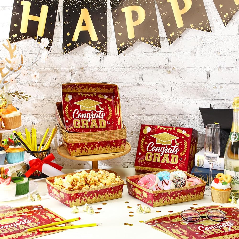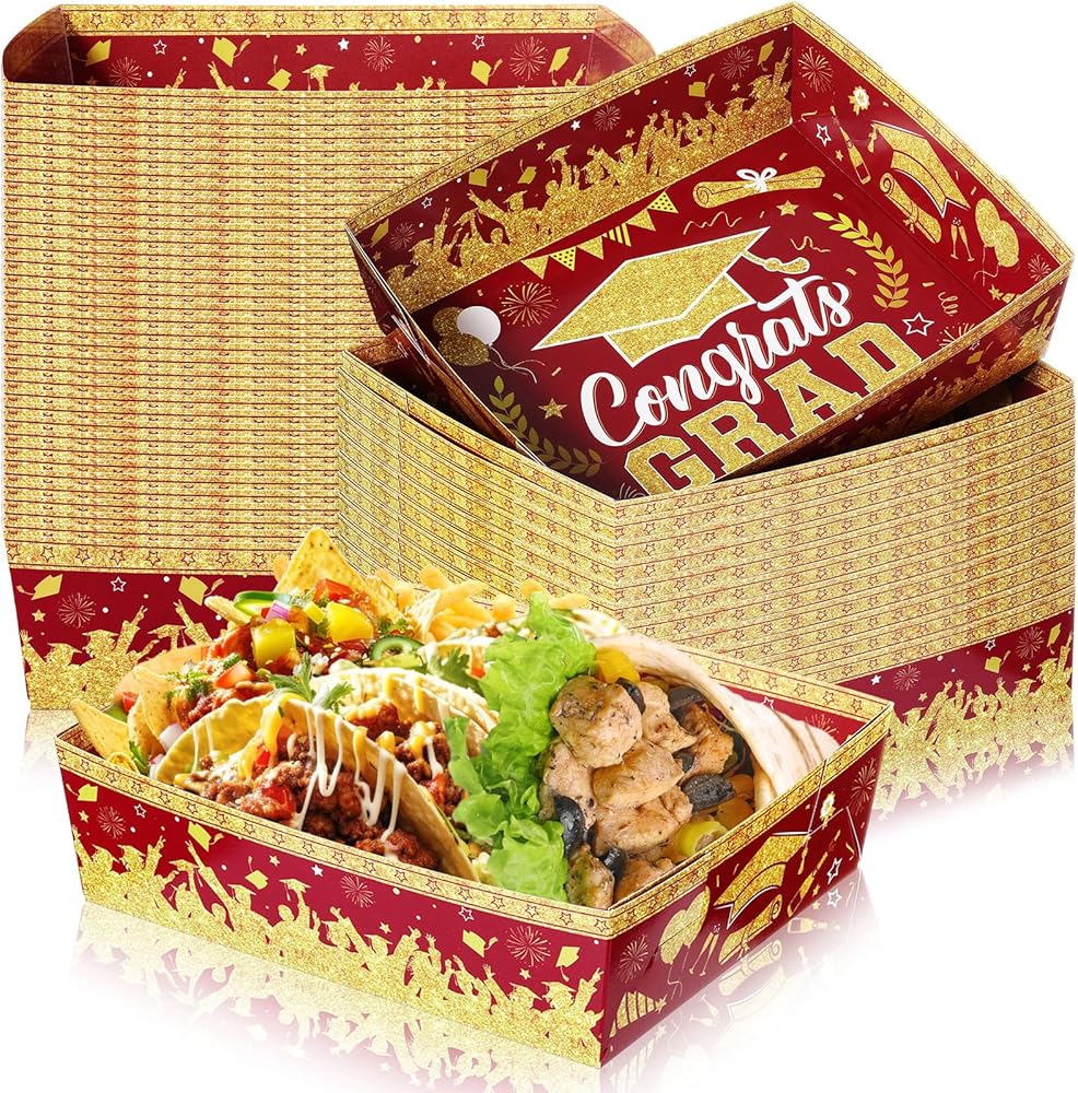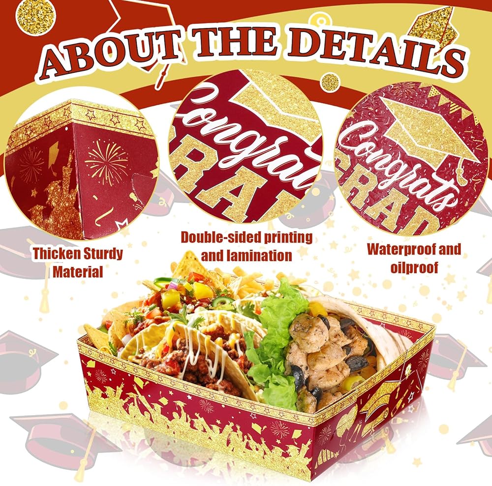 These 2024 congrats grad party paper disposable food boats are constructed with a film coating on the inside that acts as a grease resistant barrier against oil spills and water, keeping the table and counters clean.