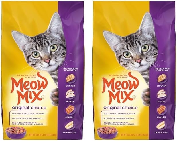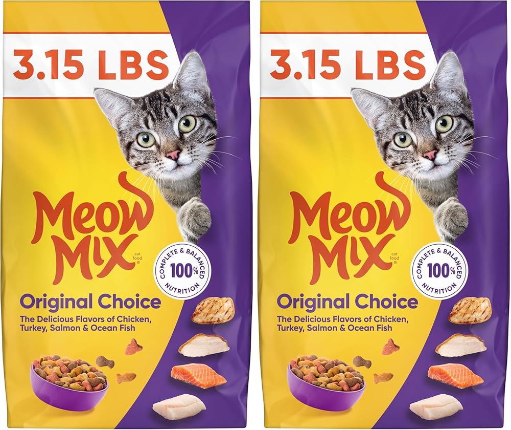 With the delicious flavors of chicken, turkey, salmon, and ocean fish, cats ask for Meow Mix Original Choice cat food by name. It's the perfect mix to help you connect with your cat over a healthy meal.