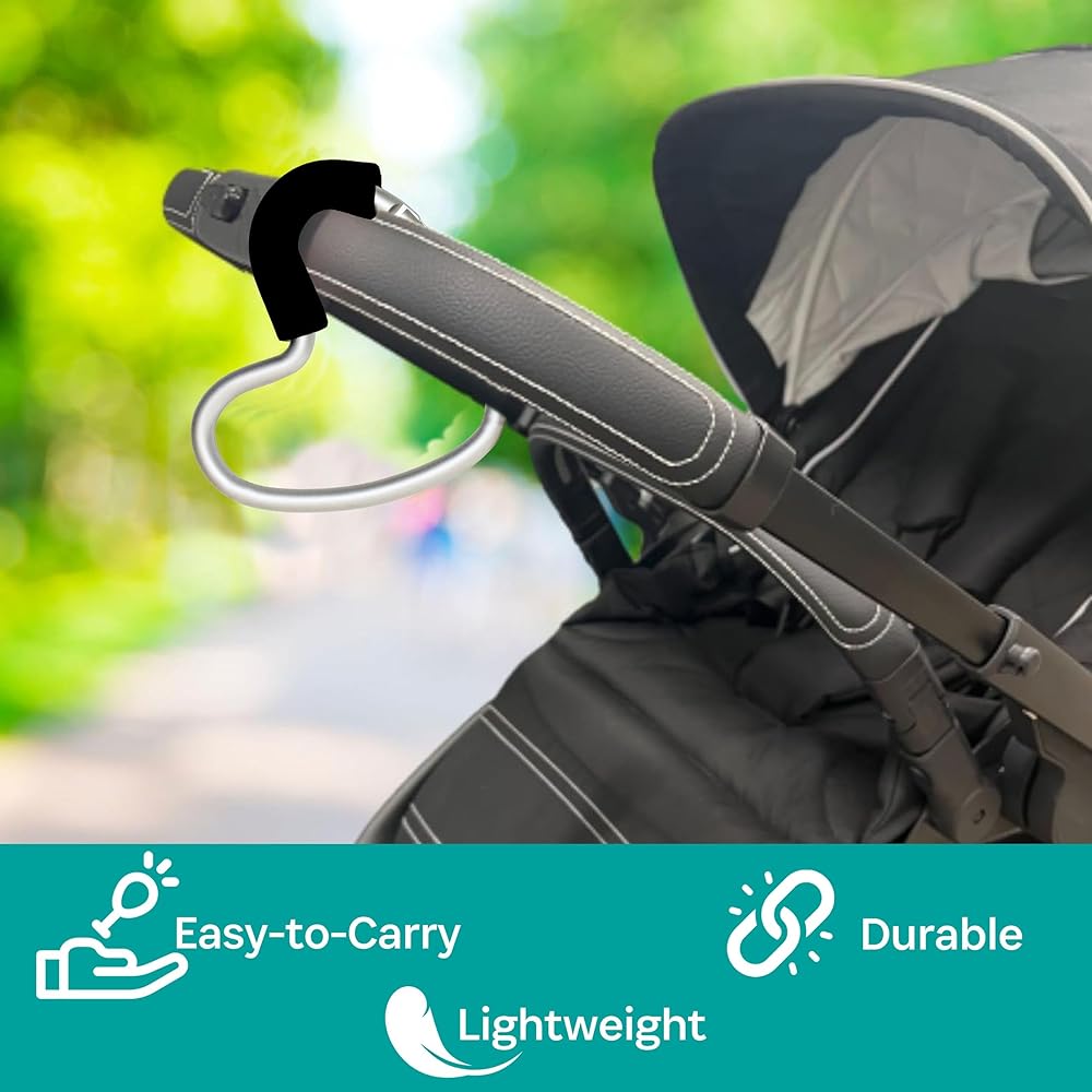 Voted Mom's Favorite Stroller Hook, but Dads will love it too. Great for hanging your purse, diaper bag, camera, shopping bags and the lock discourages theft. Ergonomically designed with moms in mind, the stylish buggy guard B-Hook is constructed using lightweight, heavy-duty aluminum, with a non-slip rubbery grip. Hinge opens outward which makes it easy to slip items on and off with only one hand. Wide lower loop accommodates extra wide handles while the B-Hook's size keeps items close to stroller. Our 3-Digit Resettable combination lock allows you to secure your valuables, freeing you to enjoy and focus on your children. Perfect for theme parks, shopping malls, traveling, grocery stores, restaurants, the beach and much more. Dads will want to use it for themselves for golf bags, ski gear, bicycles, camping, etc. so you may want to get them one too. Locking Device is OPTIONAL and is not required for everyday use.