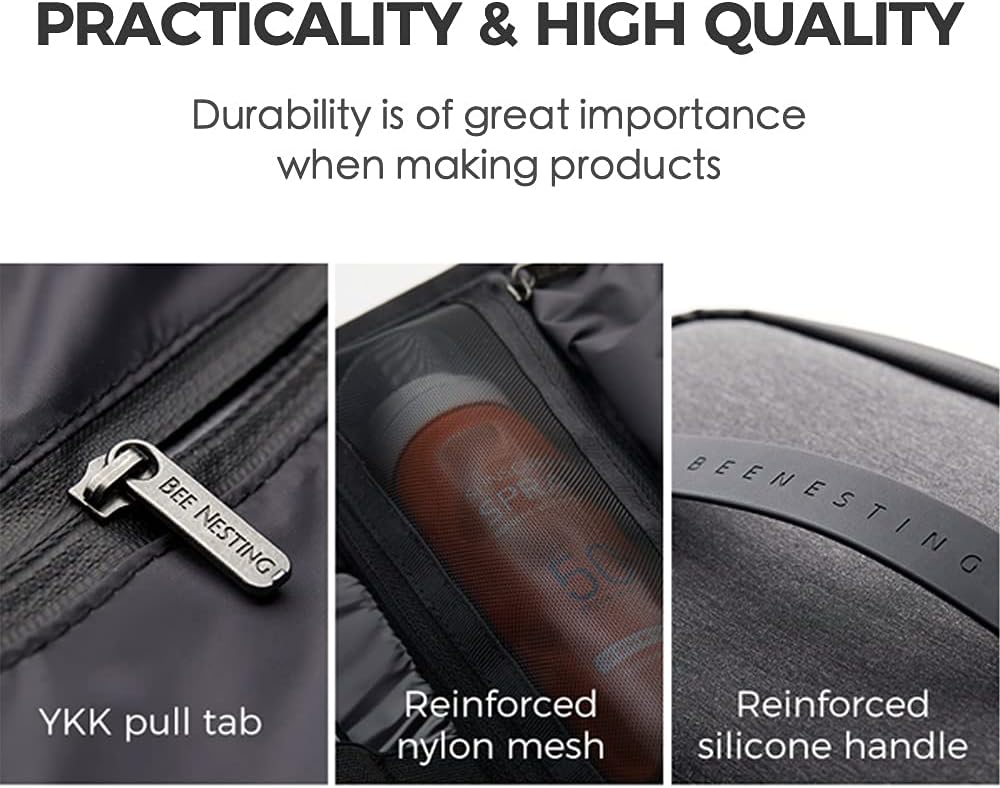 مقاوم للماء وعالي الجودة - إنه مصنوع من نسيج معزز مركب من ثلاث طبقات مقاوم للماء والأوساخ، ويحمي العناصر من التلف. بطانة النايلون المقاومة للماء يمكن أن تتجنب المشاكل الناجمة عن التسرب العرضي للسائل. يحتوي BeeNesting Pro على سحاب مقاوم للماء من YKK ومنزلق مصنوع من سبيكة YKK، مما يجعله سلسًا وإغلاقًا.
