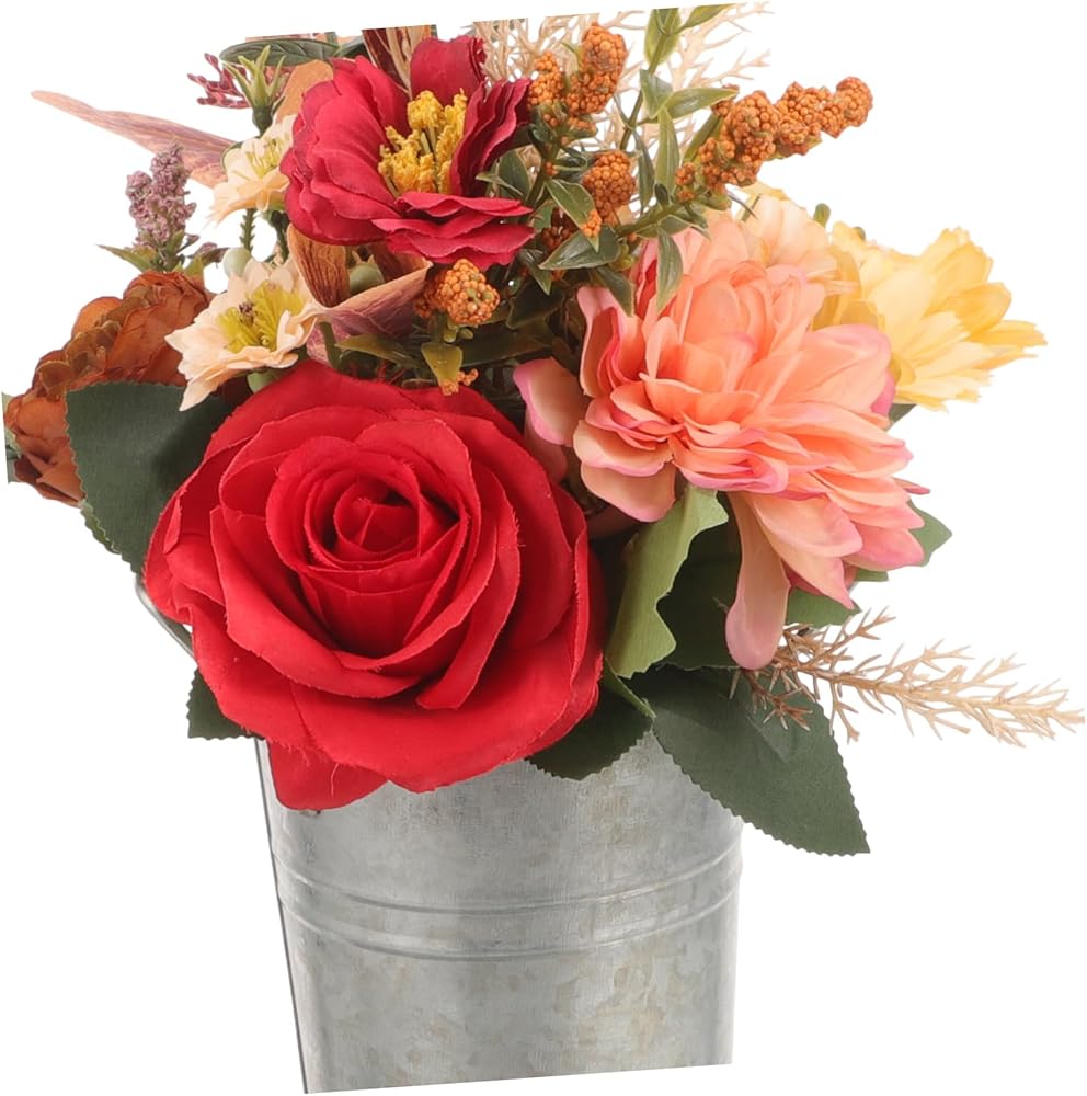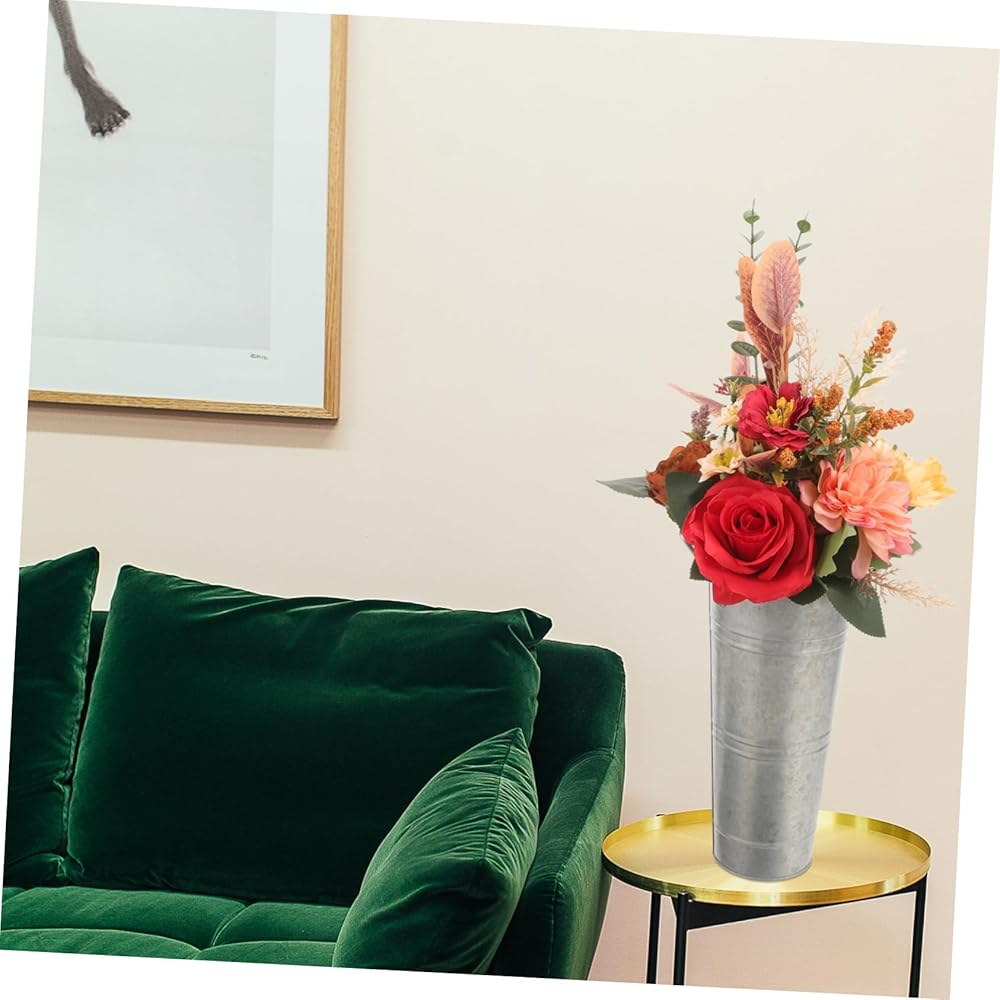 - Made of iron material, with sturdy construction, it's resistant to rain and water plants pot bucket.