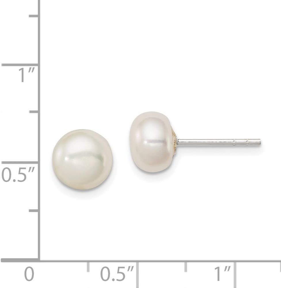 أقراط بيضاء من الفضة الاسترليني 8 ملم زر من اللؤلؤ المزروع 7-8 ملم