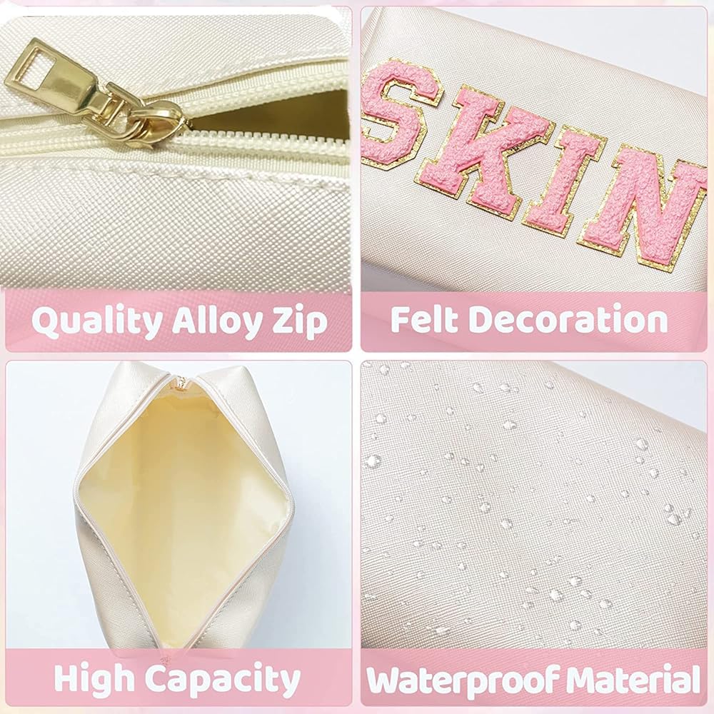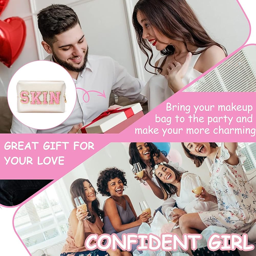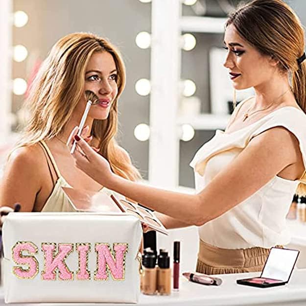 Fumxincg cosmetic bag will bring you good experiences and surprises, it can make you to better organize items when you are on the go.Makeup Bag will make sure you travel in style and keep up with the latest trends. The beautiful pastel chenille glitter letters will bring you different travel fun,Different color bags with different styles of letters,Let you have a different travel style. Portable Size :