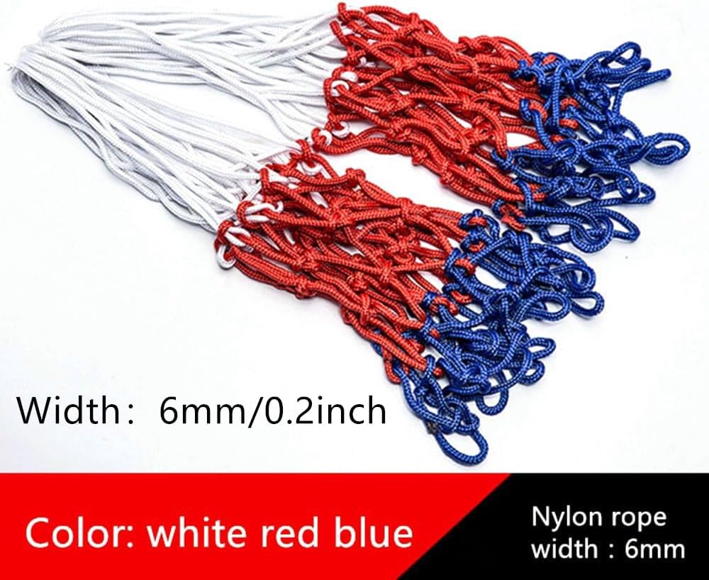 شبكة كرة سلة أنجير قطعتان/حزمة، شبكة كرة سلة من النايلون 12 حلقة، شبكة إطار كرة السلة، شبكة من النايلون الأحمر والأبيض والأزرق، شبكة إطار كرة السلة