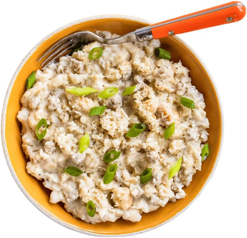 ORIGINAL RECIPE! This classic dish is made with buttermilk biscuits with a creamy gravy and pork sausage.