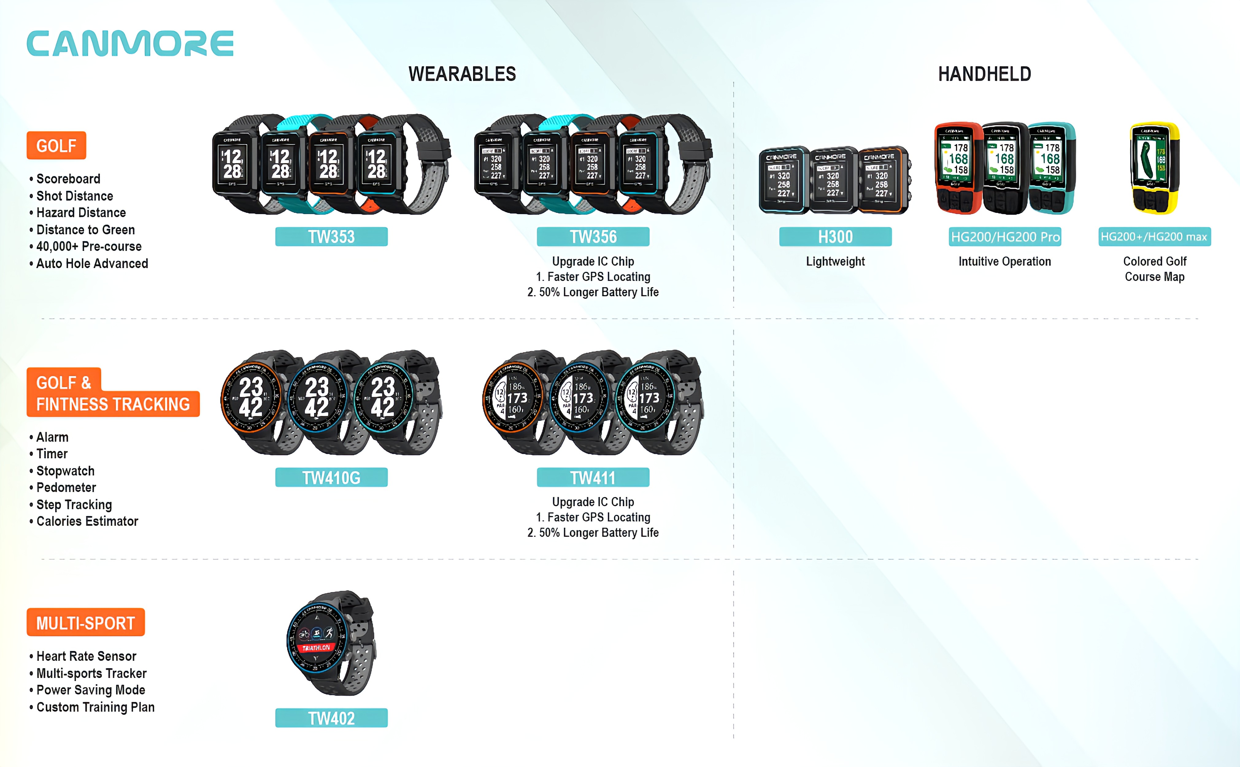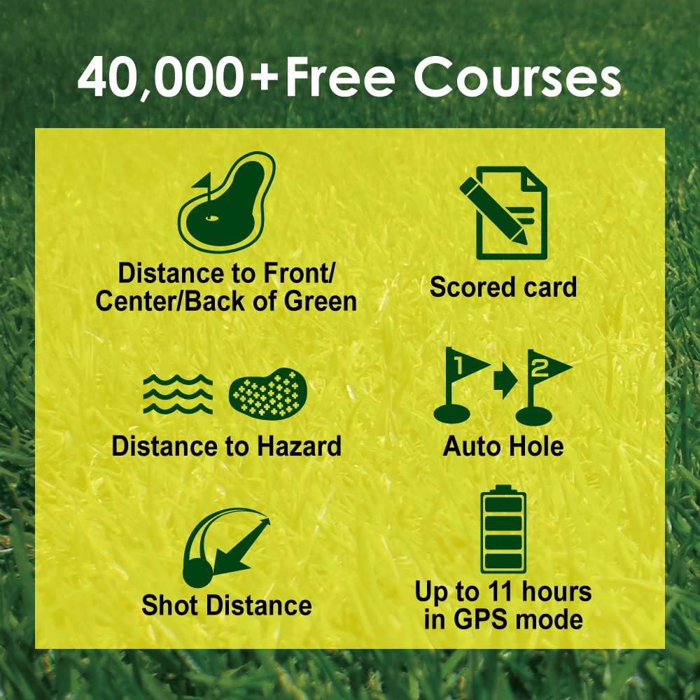 【سهلة الاستخدام، لا تحتاج إلى إعداد】تبحث ساعة الجولف Canmore TW353GB GPS تلقائيًا في الملاعب والثقوب القريبة لعرض المسافة إلى اللون الأخضر (الأمامي/ الأوسط/ الخلفي)، ومسافة الخطر، ومسافة اللقطة، وبطاقة الأداء.
