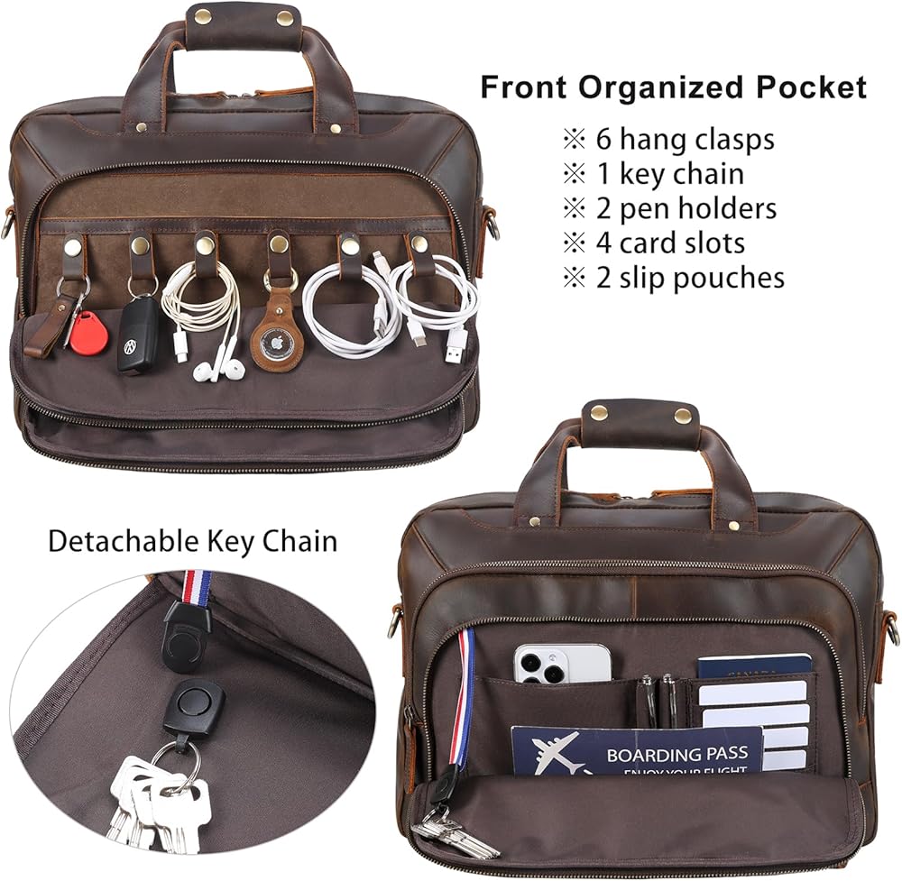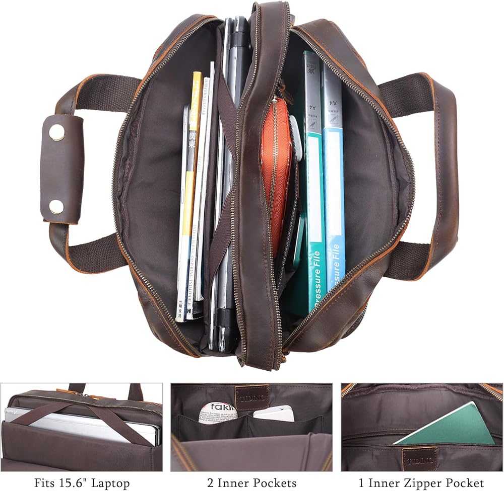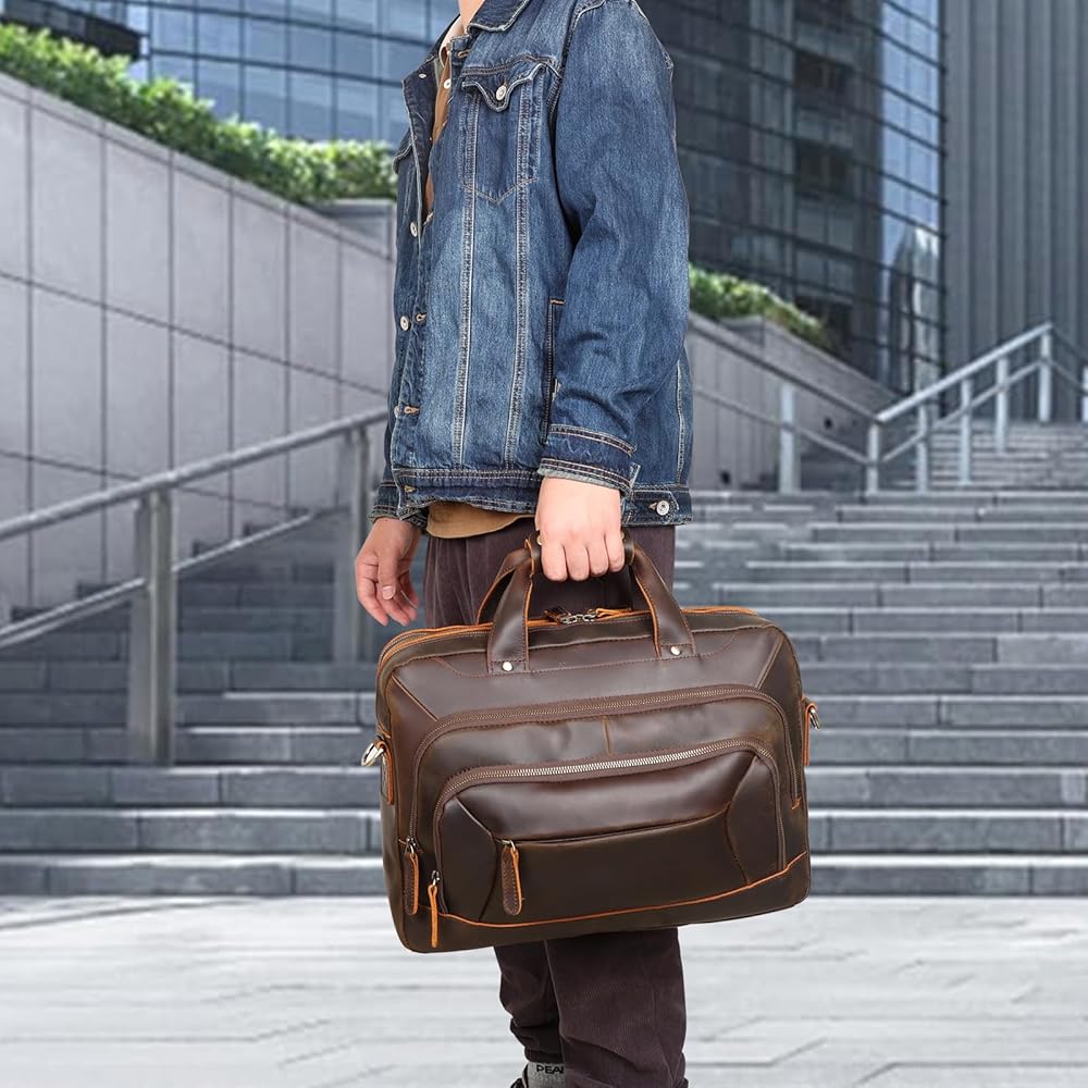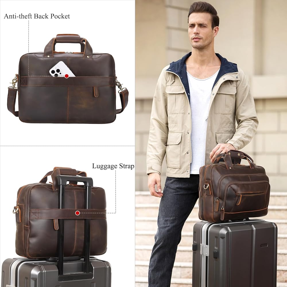 【هدية مثالية للرجال】حقيبة الكمبيوتر المحمول الجلدية هذه واسعة بما يكفي لحمل أغراض عملك اليومي ورحلات العمل. إنه اختيار هدية مثالي للرجال في الذكرى السنوية، وعيد الحب، وعيد الميلاد، وعيد الأب، وعيد المعلم، والكريسماس، وعيد الشكر، ورأس السنة الجديدة، وغيرها من العطلات.