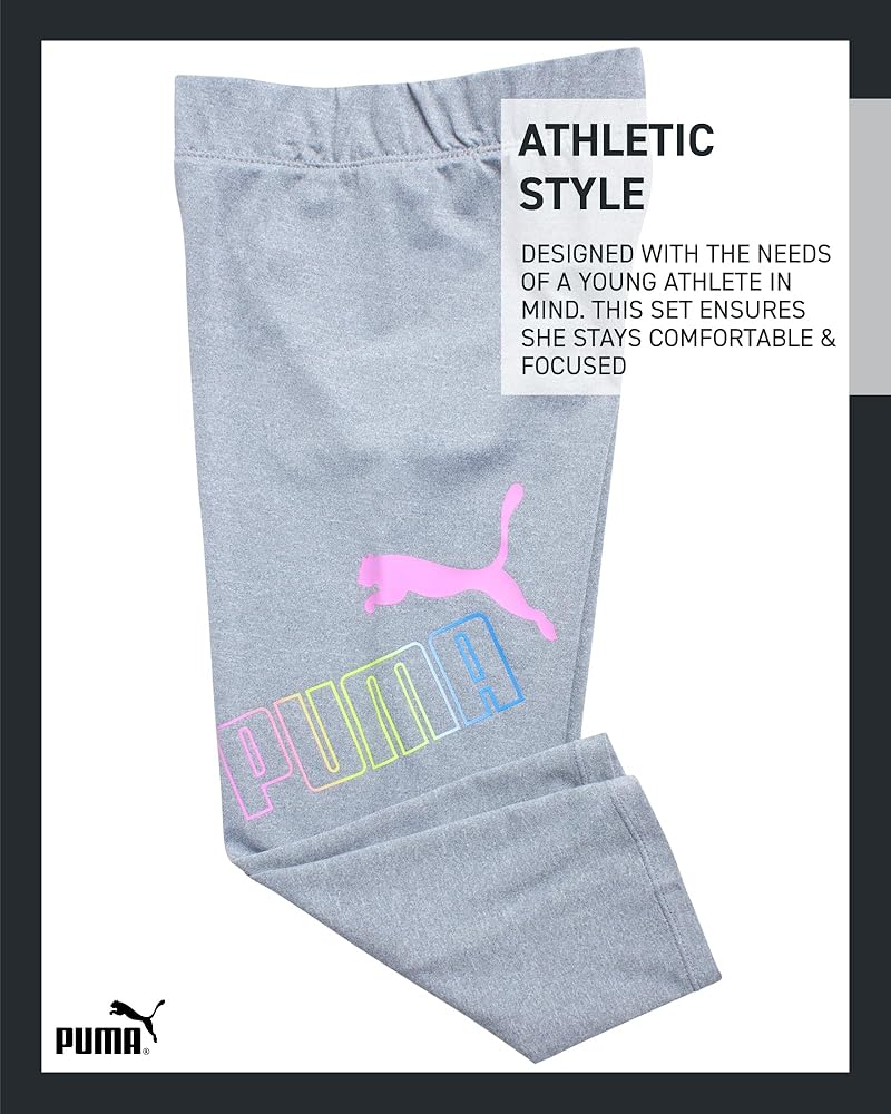 • مظهر رياضي مطابق: ارتقي بخزانة ملابسها الصيفية مع تي شيرت PUMA للفتيات وبنطلون Capri Leggings. يوفر هذا الزي المطابق مظهرًا رياضيًا لطيفًا وعصريًا ومثاليًا لأي مناسبة. سواء كانت متجهة إلى التمرين أو تتسكع مع الأصدقاء، ستكون مثالاً للأناقة الرياضية في هذا الطقم الأنيق